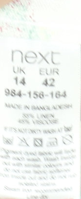 This beautiful floral A-line skirt from Next is a timeless piece for any casual or summer wardrobe. Crafted from a breathable linen and viscose blend, it offers both comfort and effortless style. The fabric’s soft texture and lightweight quality make it perfect for warm-weather wear, while the gentle structure of the A-line silhouette provides a feminine shape that flatters many body types. The skirt features a delicate floral print in yellow, teal, grey, and burgundy hues on a light base, creating a fresh and uplifting look. Designed in a classic mid-length cut, it falls gracefully around the knee, making it suitable for both relaxed daytime outings and evening events. Its waist is structured for a comfortable fit, while a discreet zip closure ensures easy wear. This skirt’s subtle lining adds extra comfort without compromising on the breezy feel, making it perfect for holidays, casual weekends, or garden parties. Pair it with a white blouse or simple vest and sandals for daytime chic, or dress it up with a fitted top and wedges for a more polished look. The overall quality of this garment reflects Next’s commitment to style and wearability. In excellent condition, this pre-loved piece shows minimal signs of wear and retains its vibrant print and soft linen texture. It’s an ideal choice for someone seeking a stylish, easy-to-wear skirt that combines quality craftsmanship and seasonal charm. A versatile addition to any wardrobe, it’s ready to be worn and enjoyed. Don’t miss out on this lovely Next floral midi skirt—perfect for bringing a fresh touch of elegance to your everyday look.