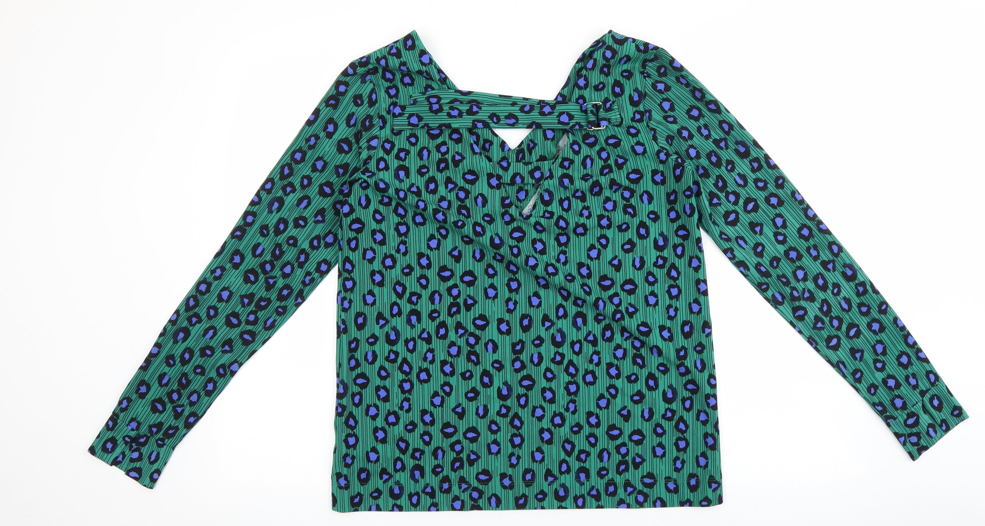 Womens Green Animal Print Polyester Basic Blouse Size 8 V-Neck - Leopard Print