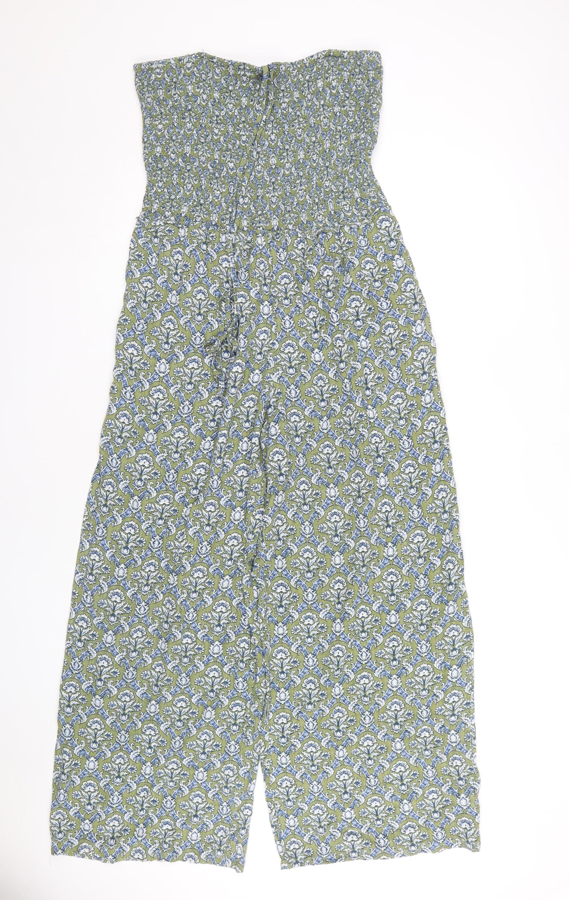 Discover effortless style with this chic Next jumpsuit, perfect for a casual outing. Designed for women, this one-piece jumpsuit features a beautiful floral pattern in calming shades of green and blue, sure to make a statement in any setting. The relaxed fit and wide-leg design offer a comfortable and trendy silhouette, while the sleeveless cut ensures you stay cool during the warmer months. Constructed for Spring and Summer occasions, this jumpsuit is ideal for those laid-back days. The item is in excellent condition with no visible defects, promising a fresh wearing experience. Make this elegant jumpsuit your go-to piece for a versatile and fashionable wardrobe staple.