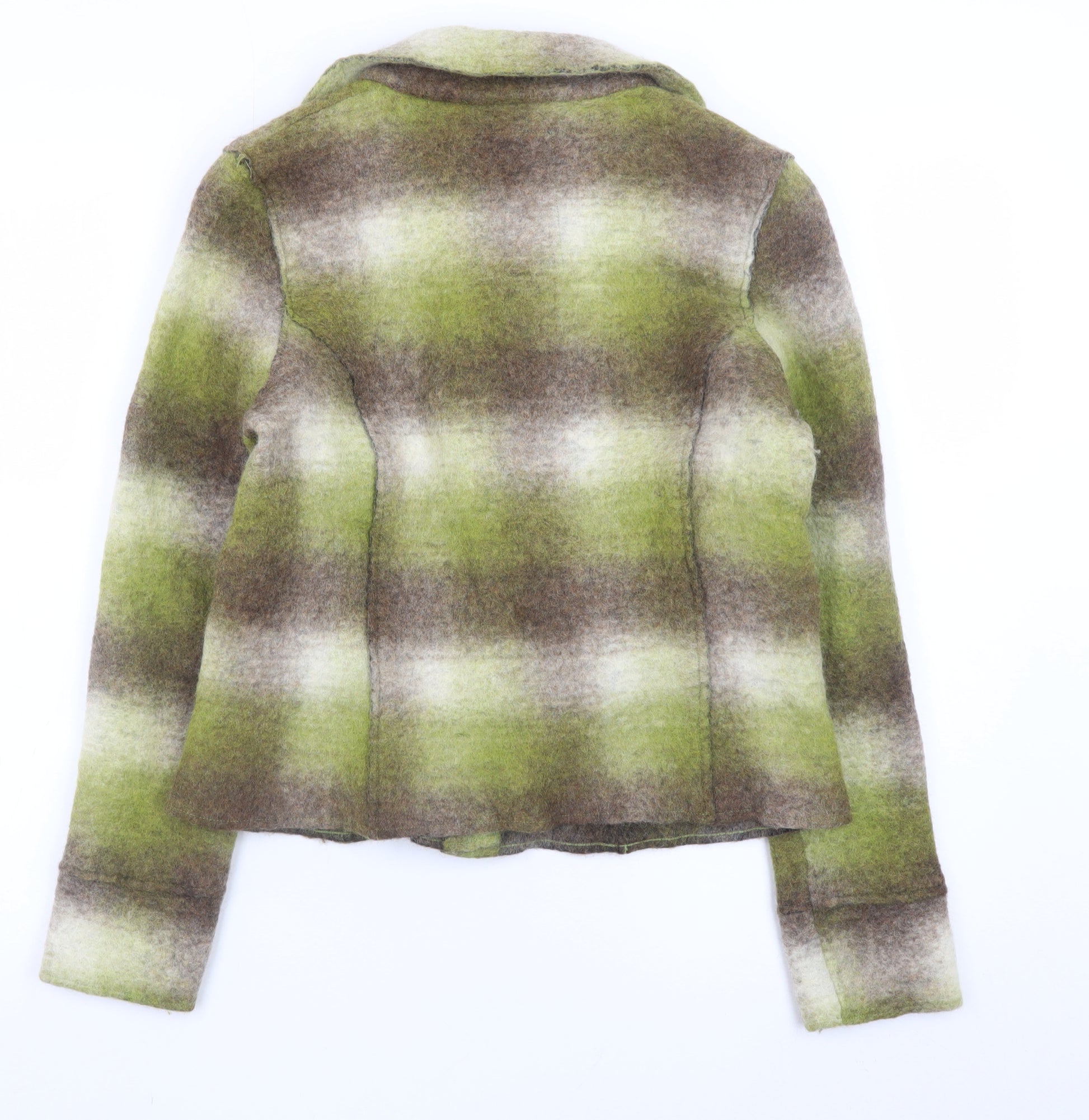 Next Women's Green Checked Wool Blend Button Jacket Size 12