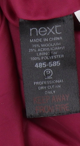 Embrace timeless elegance with this sophisticated women's pea coat from Next. Perfectly tailored in an appealing shade of green, this coat is crafted from a luxurious blend of wool and acrylic, ensuring both comfort and durability. The coat features a classic single-breasted design with stylish button accents that add a refined touch. Its mid-length cut provides ample coverage for chilly autumn and winter days, making it a perfect addition to any wardrobe. The coat is fully lined with polyester, ensuring a smooth fit and easy layering over your favourite outfits. Designed with long sleeves, this coat offers warmth and style for any casual occasion. Whether you're heading to a gathering or simply looking for a fashionable way to stay warm on your daily commute, this coat is an ideal choice. Suitable for regular wear, its timelessness makes it a versatile piece that can transition effortlessly from day to night. Expertly maintaining the brand's reputation for quality, this coat is in excellent condition, with no visible signs of wear or damage. It's a true testament to Next's commitment to blending style with functionality. With its chic and classic appeal, this coat is more than just a wardrobe staple; it's a must-have fashion statement. Don’t miss the opportunity to add this elegant piece to your collection, perfect for complementing any outfit with grace and sophistication.