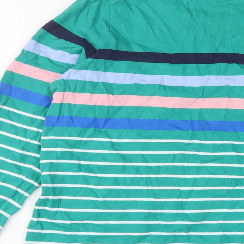 Womens Green Striped Cotton Basic T-Shirt Size 10 Crew Neck