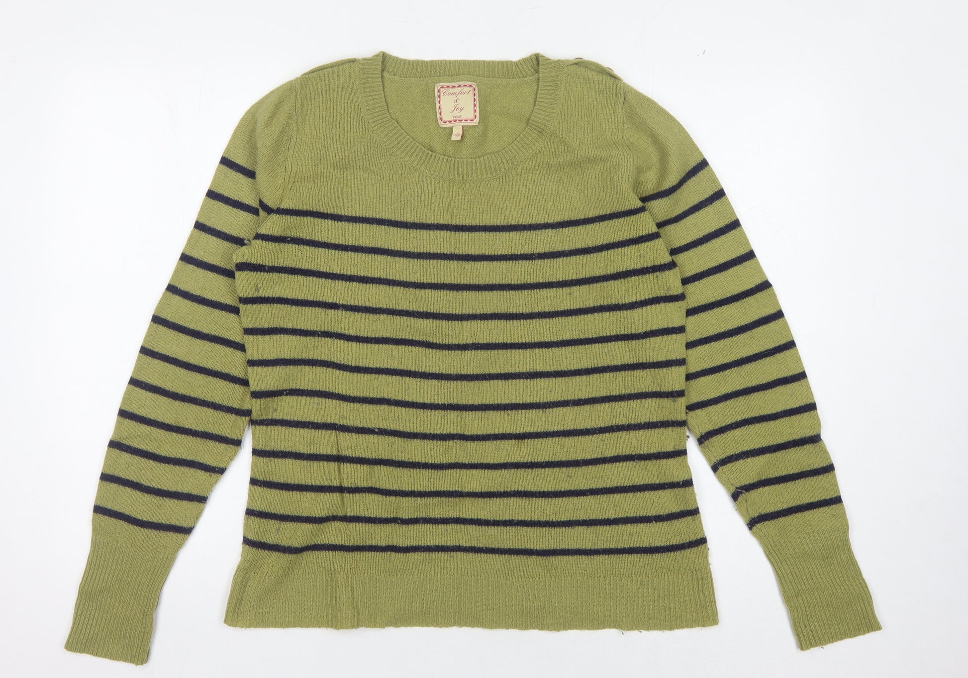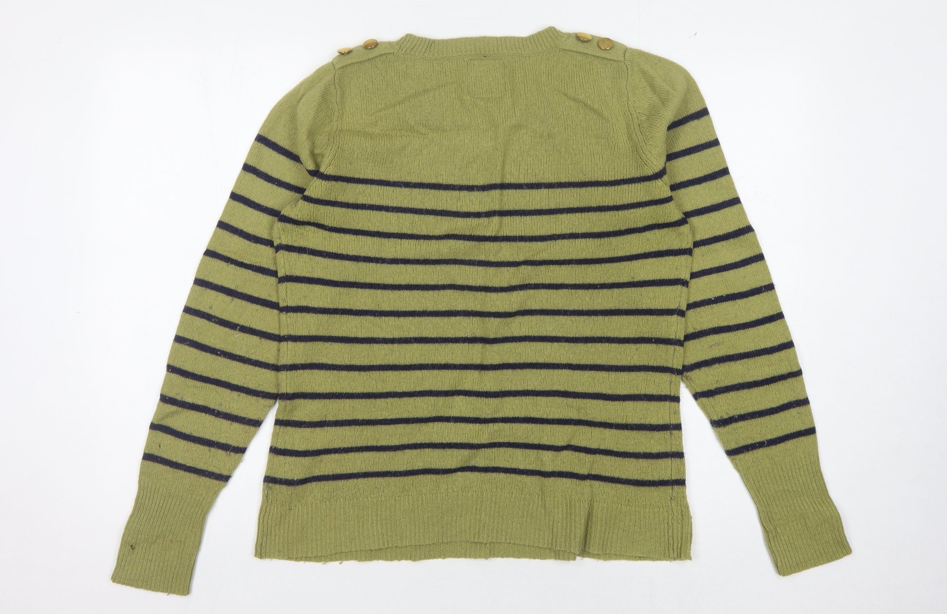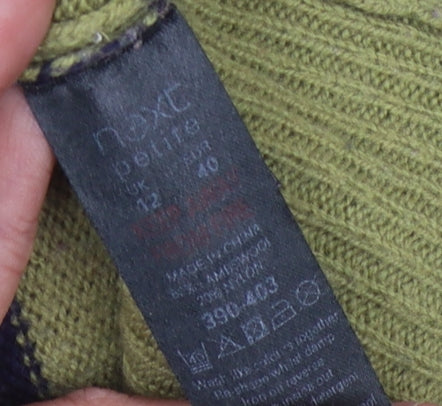 Elevate your seasonal wardrobe with this chic green striped pullover from Next, perfect for adding a touch of casual sophistication to your everyday attire. This women's jumper, in a regular size 12, is expertly crafted from 100% wool, offering warmth and comfort throughout the colder autumn and winter months. Featuring a classic crew neck and long sleeves, it seamlessly combines style and function. The charming striped pattern, accented with button details, adds a contemporary flair that is both timeless and versatile. Ideal for casual occasions, this knit pullover ensures you stay chic and cozy, making it an essential addition to any wardrobe. Machine washable for easy care, it offers practicality without compromising on style. Despite being pre-owned, it is in excellent condition, with no visible damages and appears to be lightly worn. This jumper is priced attractively at £12.75, promising both quality and value. Unleash your style potential with this elegant piece that's perfect for layering and transitioning between seasons.