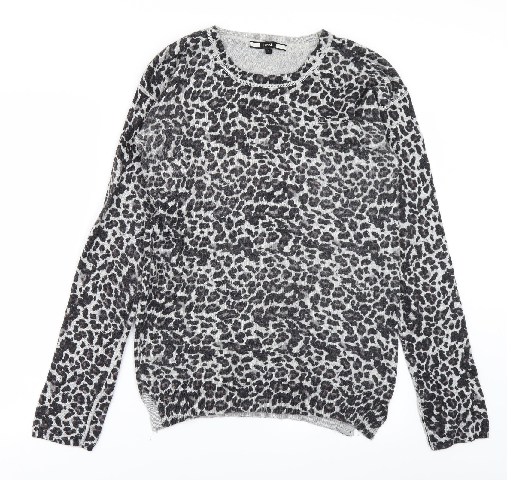 Womens Grey Animal Print Knit Pullover Jumper Size 14