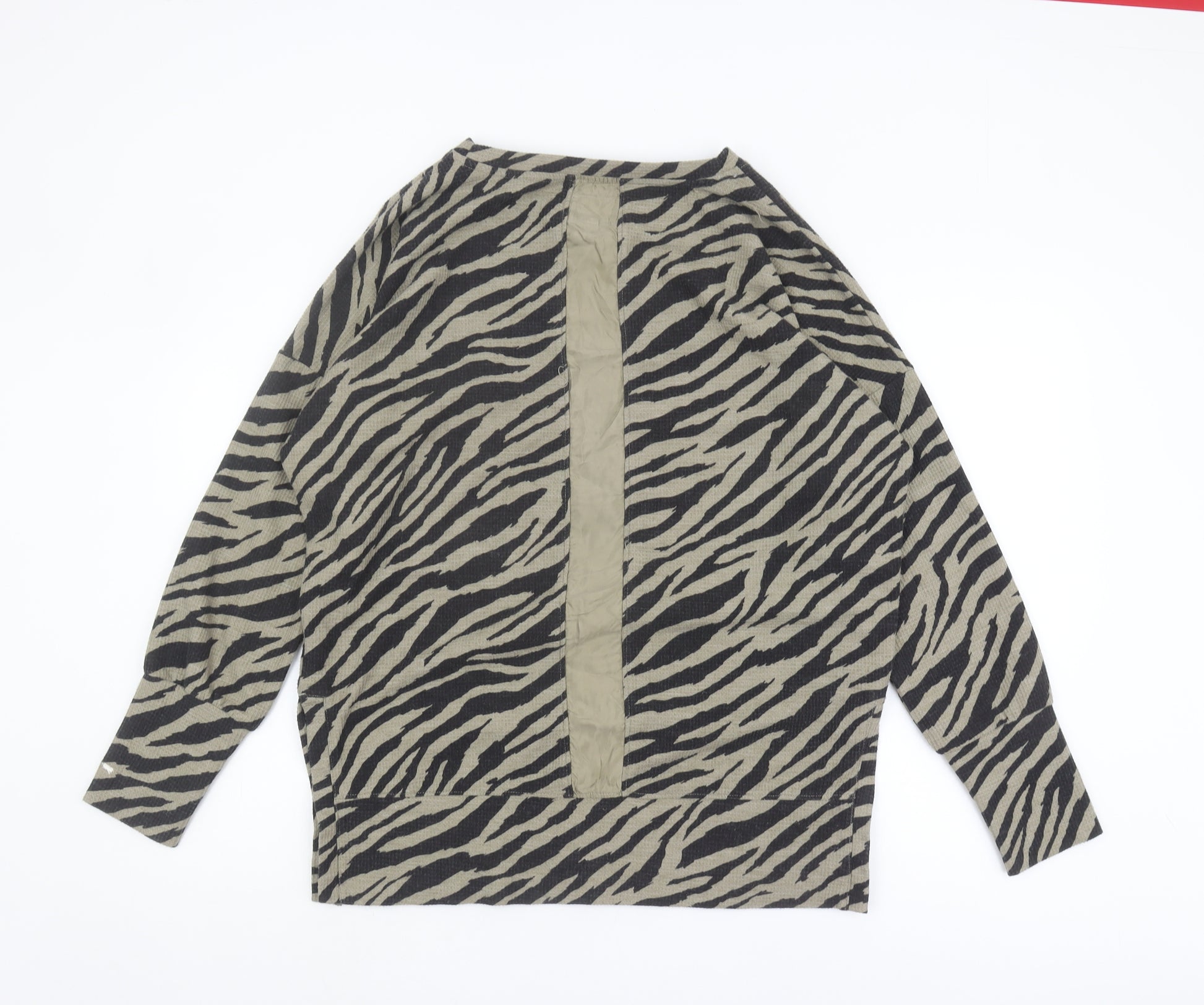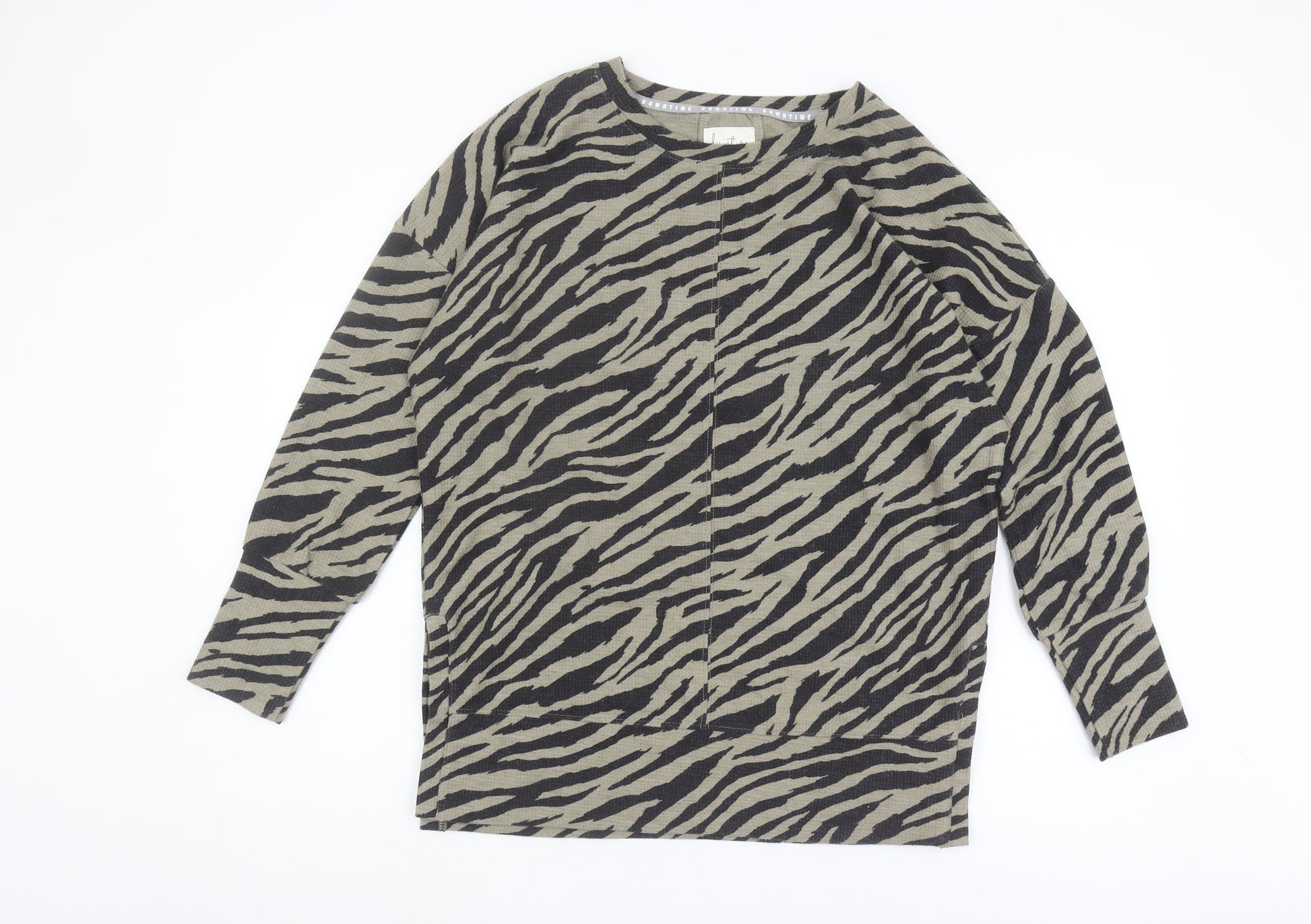 Elevate your wardrobe with this stylish blouse from Next, crafted for women who appreciate chic and comfortable fashion. This top features an eye-catching animal print in grey and black, perfect for adding a bold statement to any outfit. Designed with a regular fit, it boasts long raglan sleeves that offer effortless movement and a flattering silhouette. The round neckline adds a touch of elegance, making it suitable for both casual and slightly formal occasions. Made from a blend of polyester, cotton, cupro, and viscose, this blouse ensures comfort and durability, ensuring it becomes a staple piece in your collection. Its machine washable fabric adds to the convenience, allowing for easy upkeep. Whether paired with jeans for a laid-back look or dressed up with a skirt for an evening out, this blouse is versatile and fashion-forward. Ideal for those who love a mix of comfort and style, this blouse is set to become your new go-to piece. Gently used but in excellent condition, it's ready to add a fresh take to your wardrobe.