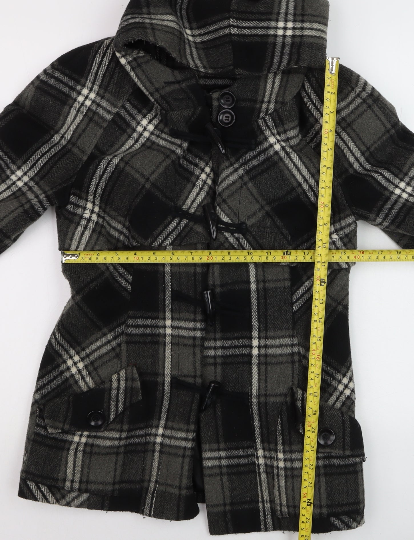 Stay warm and stylish in this beautifully crafted women's duffle coat from Next. Made from a cosy wool blend, this mid-length coat features a classic grey and black check pattern that instantly elevates any seasonal wardrobe. Designed with a traditional duffle fastening using both buttons and toggles, it adds a timeless touch while ensuring a secure closure against the chill. The attached hood provides extra warmth and comfort during cooler months, making it perfect for autumn and winter wear. Fully lined for a premium feel, the coat offers lasting softness and durability. Its regular fit ensures a flattering silhouette while still allowing room for layering during colder days. Two front buttoned flap pockets offer both functionality and style, ideal for keeping small essentials close at hand. Crafted to Next’s high-quality standards, this piece combines elegance and practicality, making it an excellent outerwear choice for everyday wear, casual outings, or commuting. The wool blend fabric ensures warmth while maintaining a soft texture and stylish drape. In excellent pre-owned condition with only light general signs of wear, this coat remains a wardrobe classic that will serve you for many seasons. Perfect for pairing with jeans, boots, or smart trousers, it transitions effortlessly from day to evening. Embrace cosy sophistication with this Next hooded duffle coat — a smart choice for women who appreciate enduring style, comfort, and quality craftsmanship.