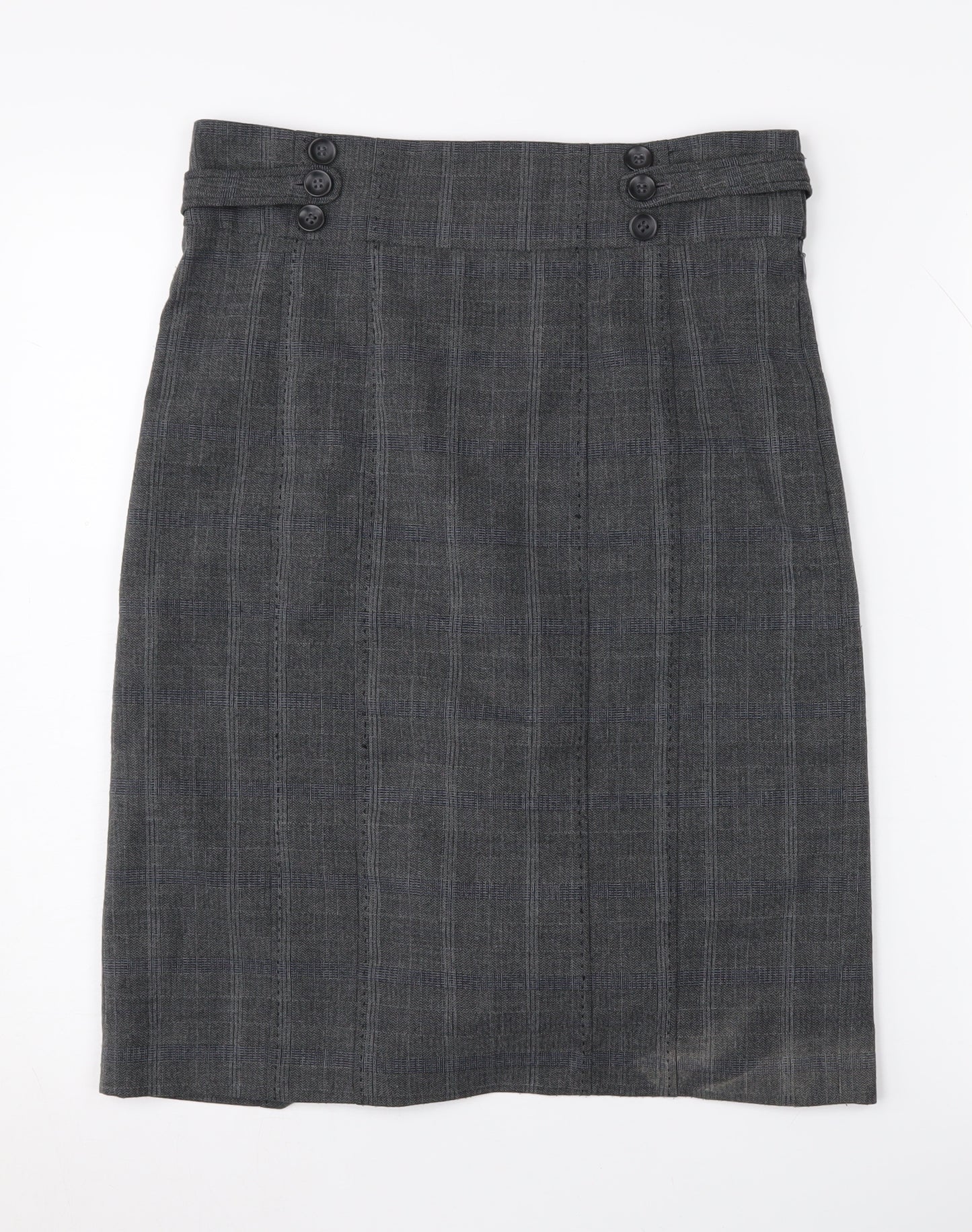 Elevate your workwear wardrobe with this sophisticated Next Women's Grey Check Pencil Skirt, tailored perfectly for a sleek and professional look. Designed with a classic check pattern, this skirt effortlessly blends traditional styling with a contemporary edge. Crafted from a comfortable blend of high-quality materials including 65% Polyester, 33% Viscose, and 2% Elastane, it ensures a snug fit while allowing ease of movement, making it ideal for long days at the office. The mid-rise design enhances your silhouette while the button accents add a refined touch to the overall look. This skirt in size 10 is perfect for ladies seeking a balance between style and functionality. It pairs impeccably with a variety of blouses and tops, ensuring versatility across different seasons. Although gently worn, it remains in excellent condition, free from any visible flaws, ensuring you step out in confidence. Moreover, maintenance is straightforward as it's machine washable, providing practicality alongside style. Don’t miss out on the chance to add this elegant piece to your wardrobe at an amazing value. Step up your fashion game with Next’s commitment to quality and design.