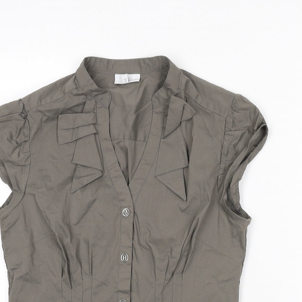 Womens Grey Cotton Basic Button-Up Size 12 V-Neck
