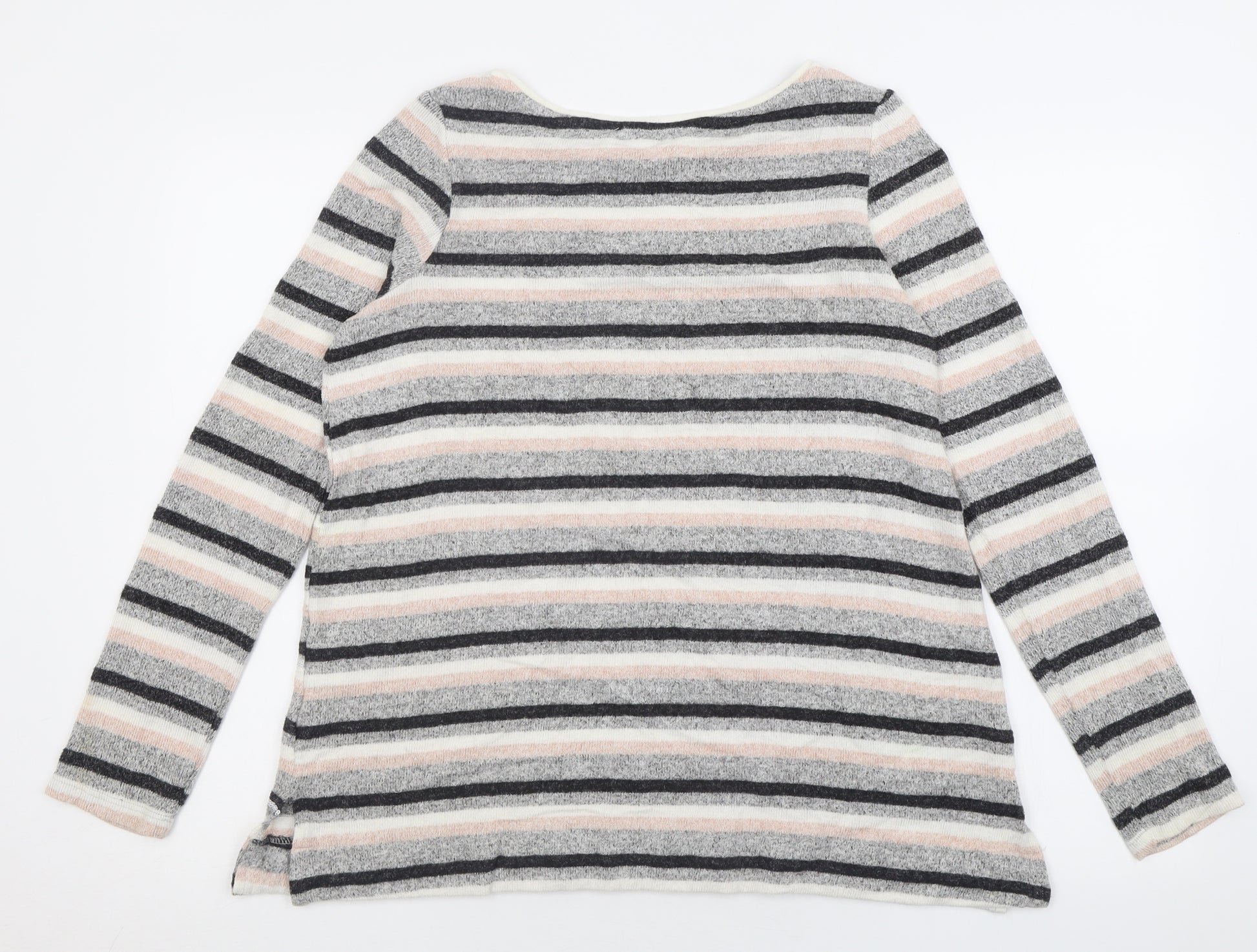 Womens Grey Crew Neck Striped Viscose Pullover Jumper Size 8