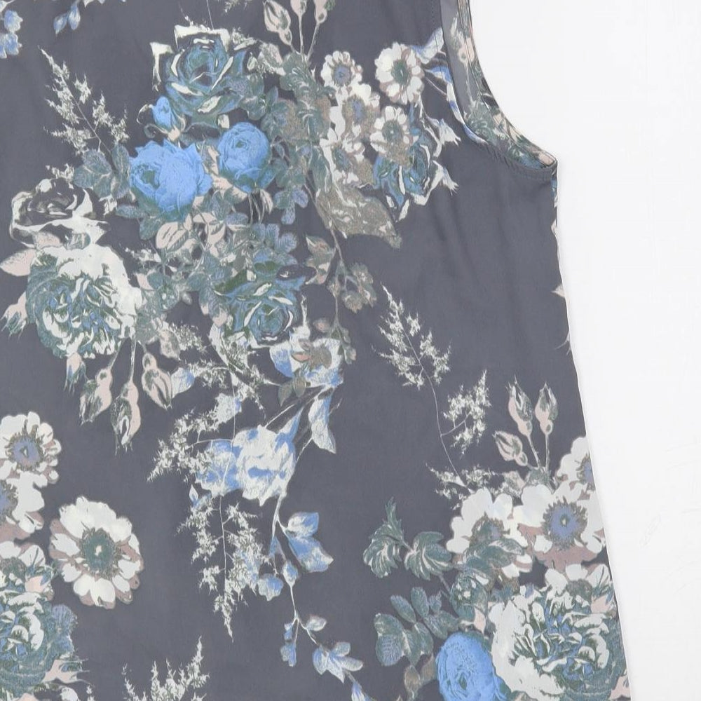 Womens Grey Floral Polyester Basic Blouse Size 14 Collared