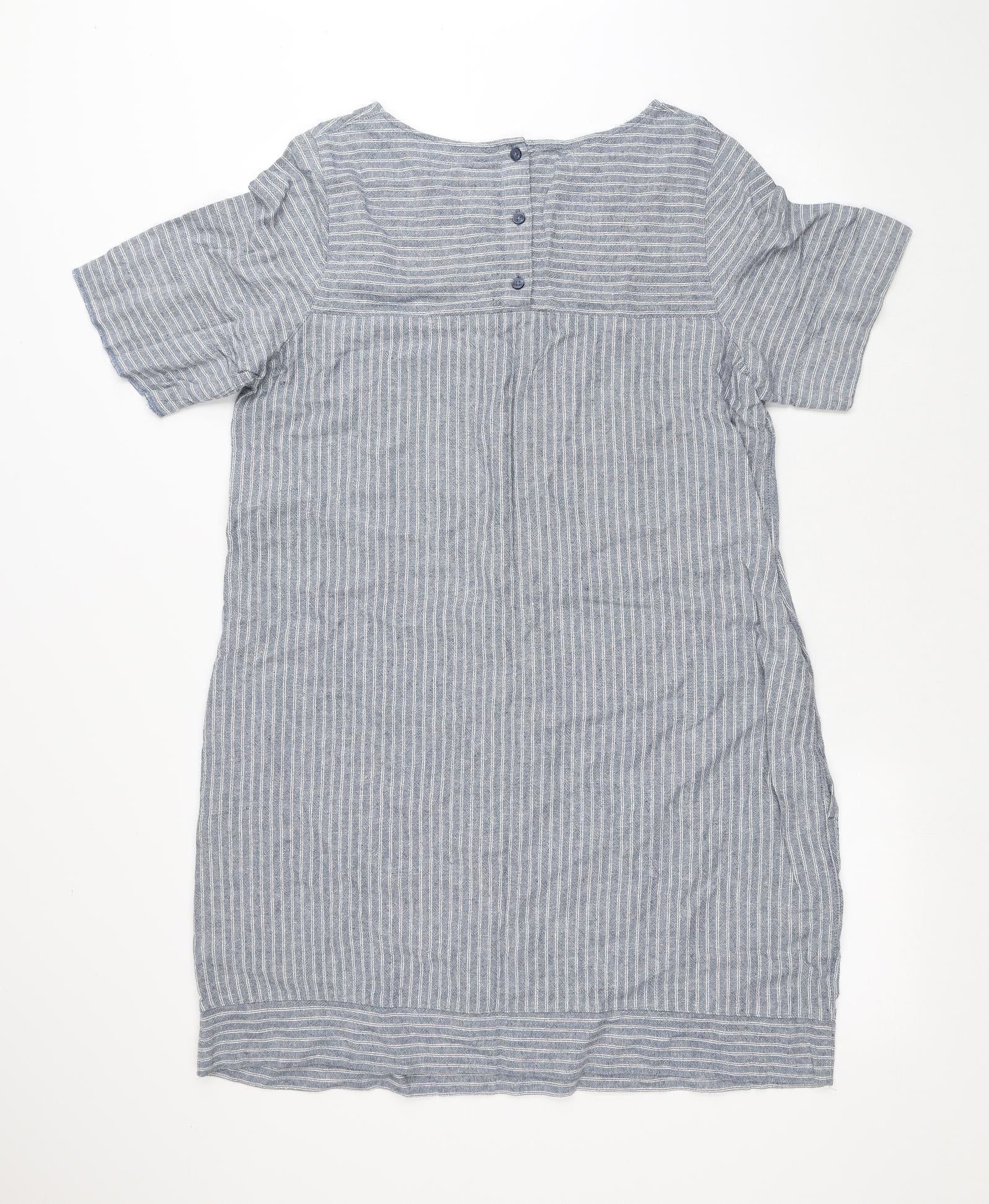Womens Grey Striped Linen A-Line Size 16 Round Neck Button - striped