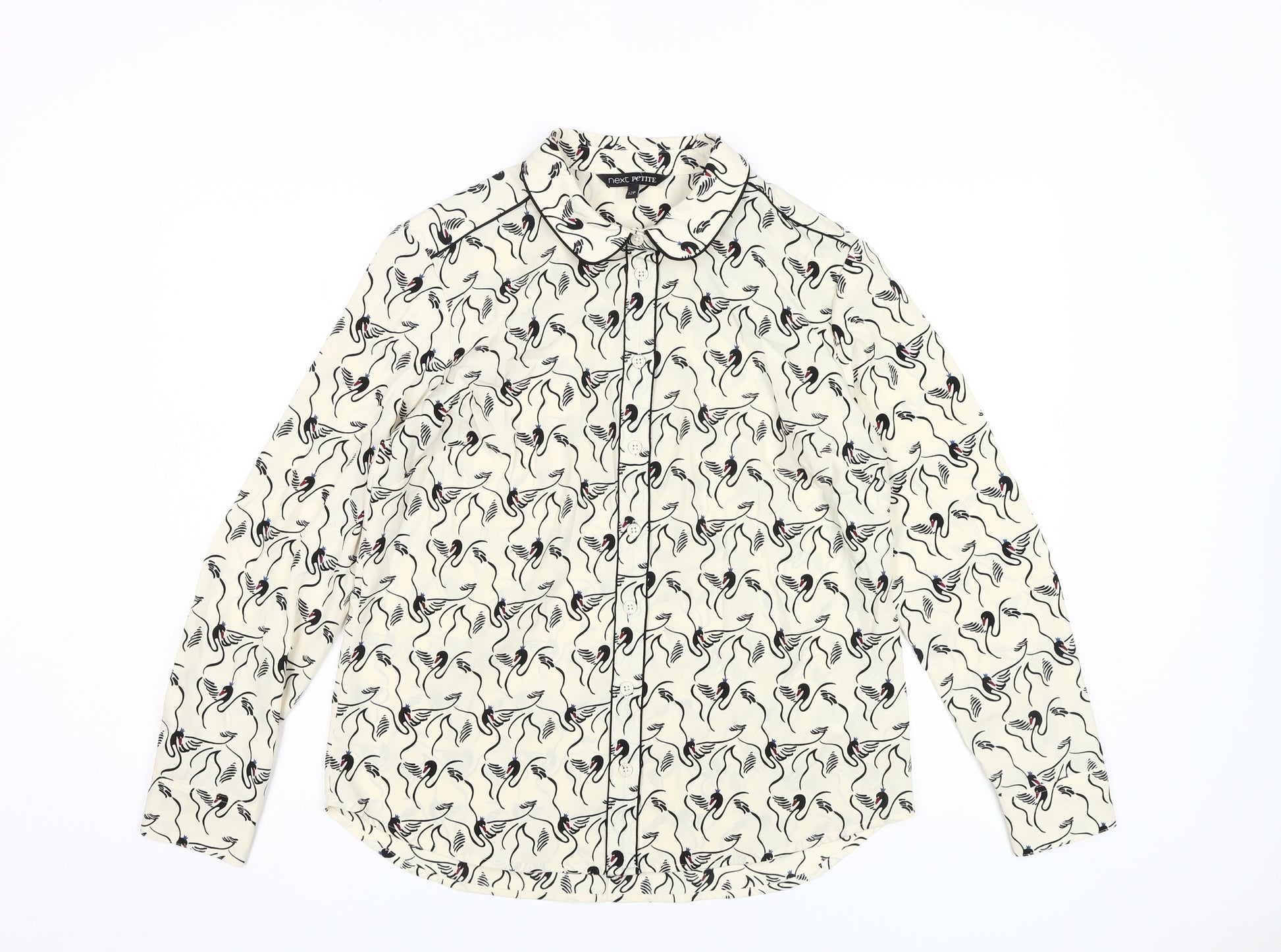 Elevate your wardrobe with this stunning Next Women's Ivory Animal Print Button-Up Shirt. Perfect for adding a touch of elegance to any outfit, this shirt features a striking animal print on a soft ivory backdrop, making it an eye-catching addition to your collection. Designed with long sleeves and a classic collared neckline, this shirt offers a timeless look suitable for various occasions. Whether you're heading to a casual lunch or a day at the office, this versatile piece provides comfort and style in equal measure.Crafted from quality polyester, the shirt ensures a lightweight feel and ease of care, being fully machine washable for your convenience. Its button-up closure allows for easy wear, while the regular fit ensures a flattering silhouette for a range of body types. With its distinctive pattern and sleek design, this shirt effortlessly combines current trends with classic appeal.Ideal for women seeking a chic yet practical addition to their closet, the Next Women's Animal Print Button-Up Shirt is perfect for pairing with tailored trousers or a skirt for a polished look, or opting for jeans for a more laid-back ensemble. Don't miss out on this must-have piece that promises to elevate your style with its unique design and comfortable fit.