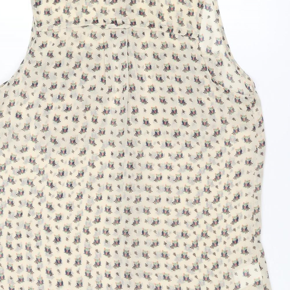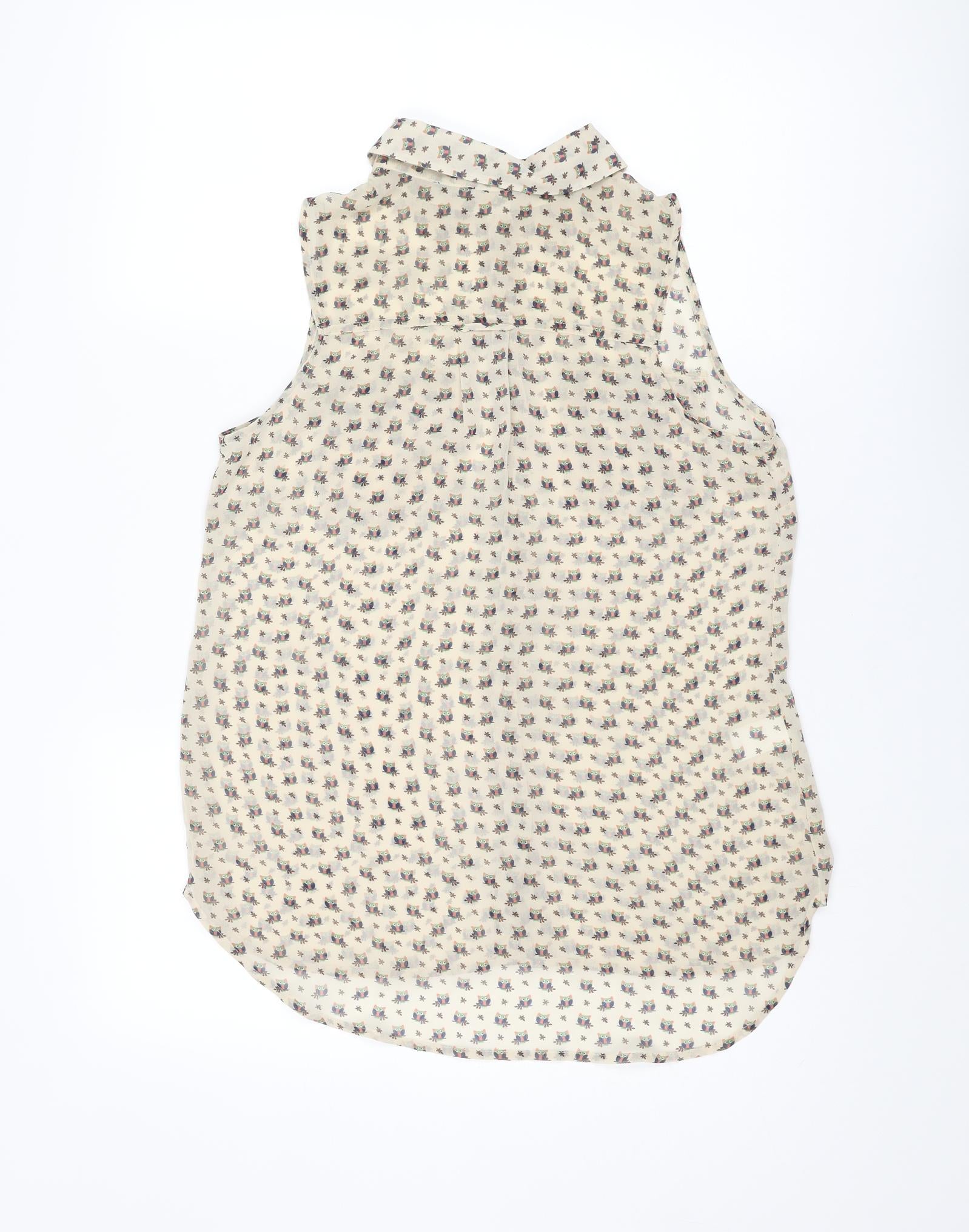 Womens Ivory Geometric Polyester Basic Button-Up Size 8 Collared - Owl Print