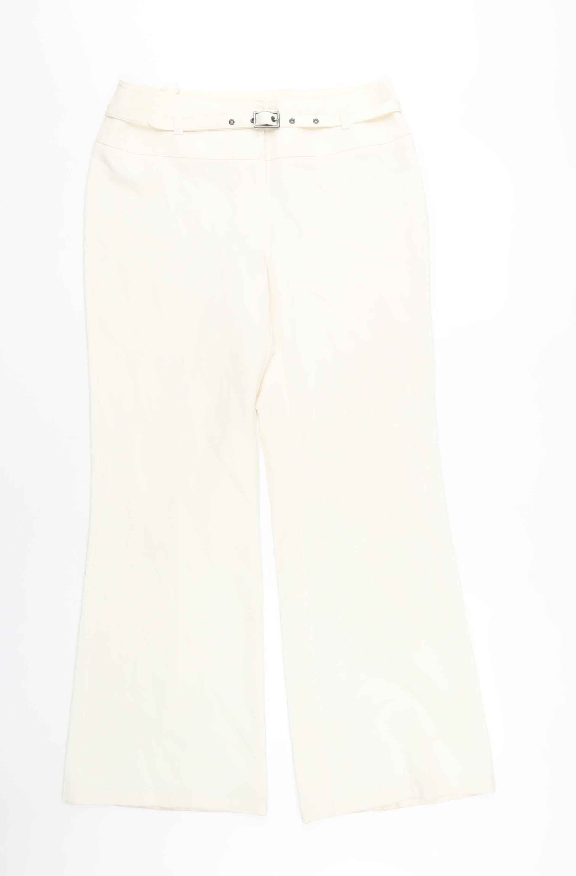 Next Women's Ivory Trousers UK 10 Belted Flared