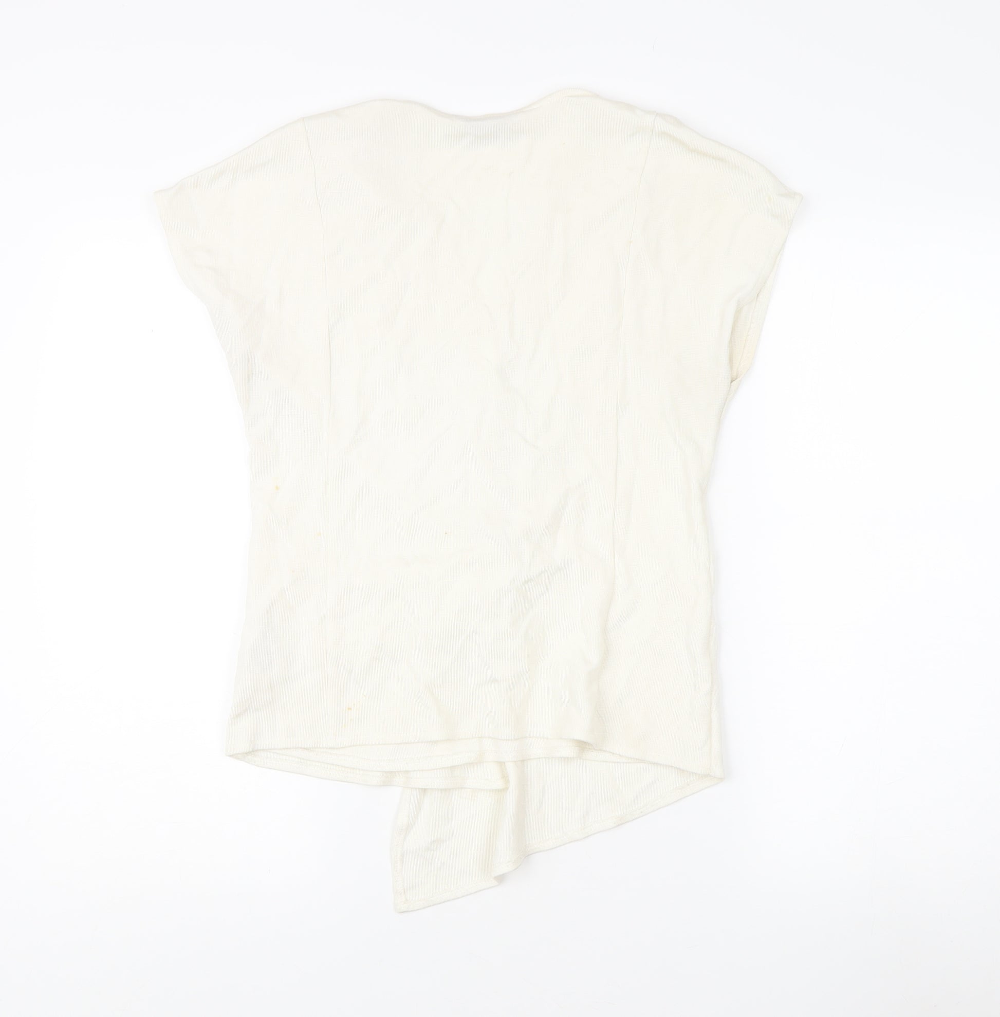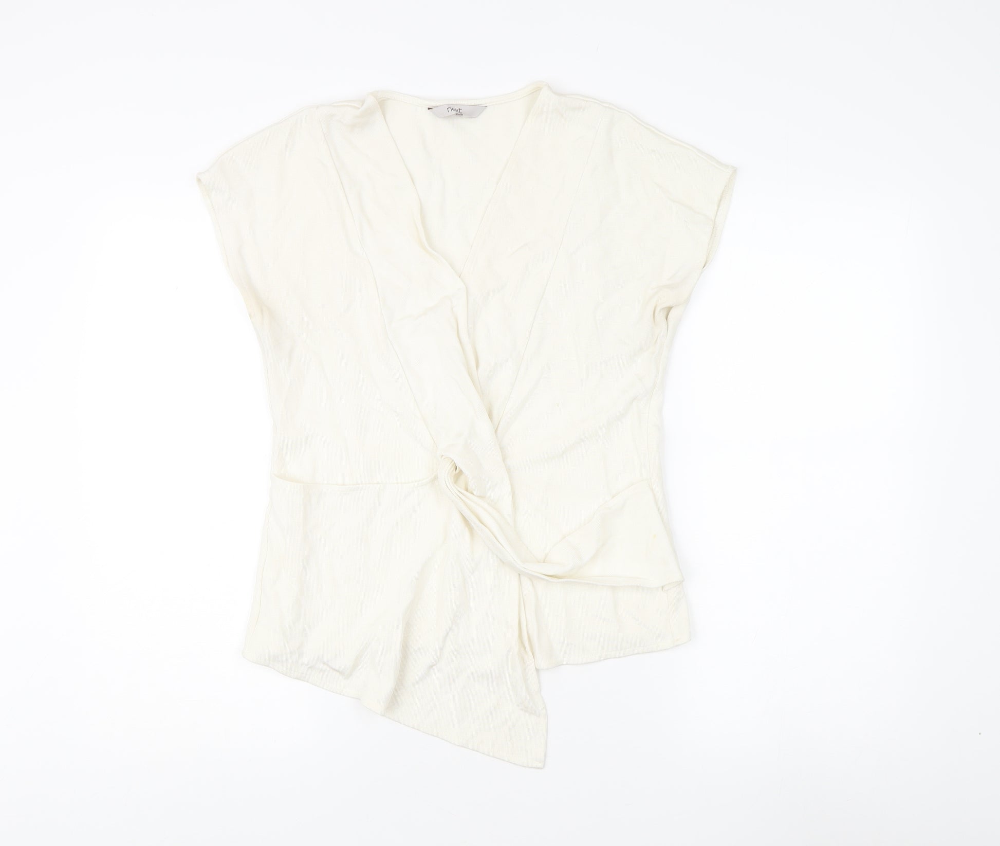 This chic Ivory Wrap Blouse from Next is a versatile addition to your wardrobe. Designed for women, this blouse offers a perfect blend of comfort and style. The wrap design accentuates your figure, making it an excellent choice for casual outings or relaxed gatherings. Crafted from a soft blend of Viscose, Polyester, and Elastane, it ensures a comfortable and breathable fit throughout Spring and Summer. The solid pattern and neutral ivory colour make it easy to pair with a variety of outfits. Short sleeves and a V-neckline enhance its stylish appeal, while the asymmetrical sleeve adds a unique touch. Whether you're dressing up for a brunch or keeping it casual for a day out, this blouse provides effortless elegance. It's machine washable too, making maintenance a breeze. Elevate your style with this fashionable piece that promises both comfort and fashion, without compromising on quality.