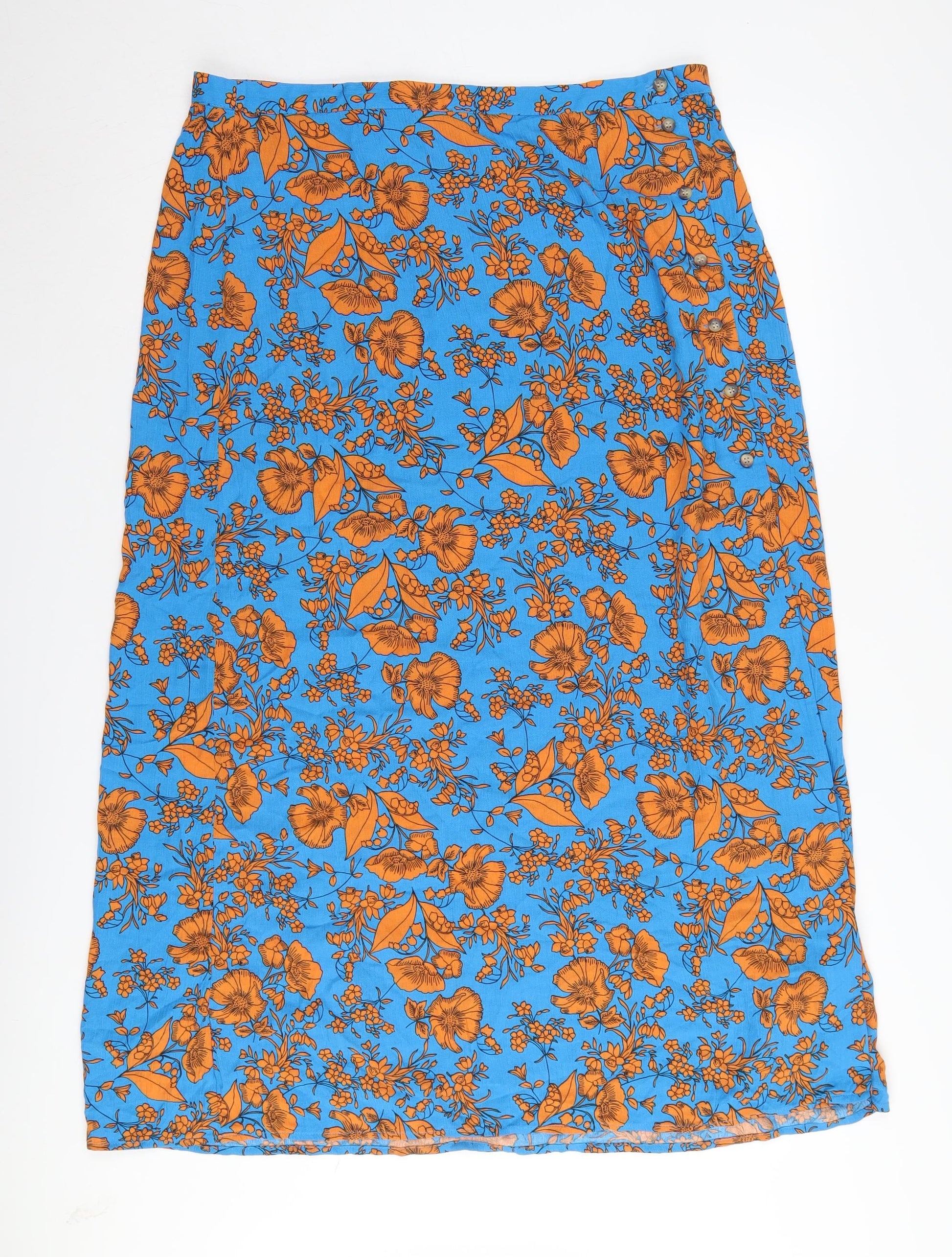 Next Women's Midi Floral Skirt, Size 16, Blue/Orange