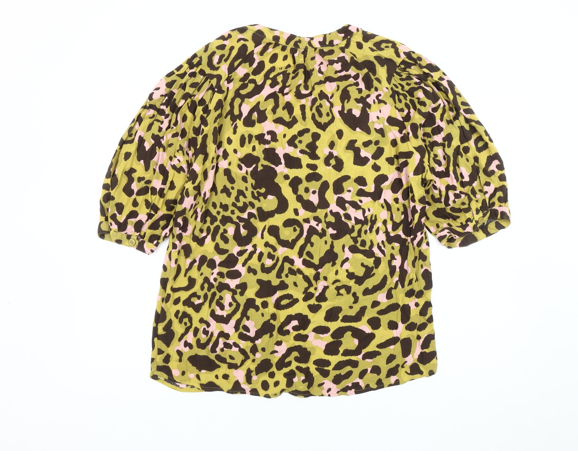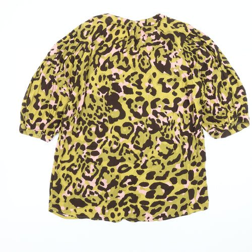 Upgrade your wardrobe with this fabulous Next women's top, perfect for adding a pop of personality to your casual looks. This size 14 top features a vibrant multicoloured animal print that is sure to make a statement wherever you go. Crafted from a comfortable cotton blend with a touch of elastane, it promises a relaxed fit that enhances your silhouette while providing all-day comfort.The top boasts a stylish V-neckline and trendy puff sleeves, adding a touch of sophistication to the overall design. The front button accents not only enhance the aesthetic appeal but also offer functionality, allowing you to adjust the neckline to your preference.Ideal for spring and summer occasions, this jersey fabric top is lightweight and breathable, ensuring you stay cool during warmer months. Its machine washable feature makes it easy to care for, so you can enjoy wearing it time and again without any hassle.Whether it's a casual day out or a laid-back gathering with friends, this top fits seamlessly into any leisure activity. Pair it with your favourite jeans or a skirt and some chic accessories to complete a look that’s both effortless and stylish. Don't miss the chance to own this versatile piece from Next, a brand known for its quality and fashionable designs.