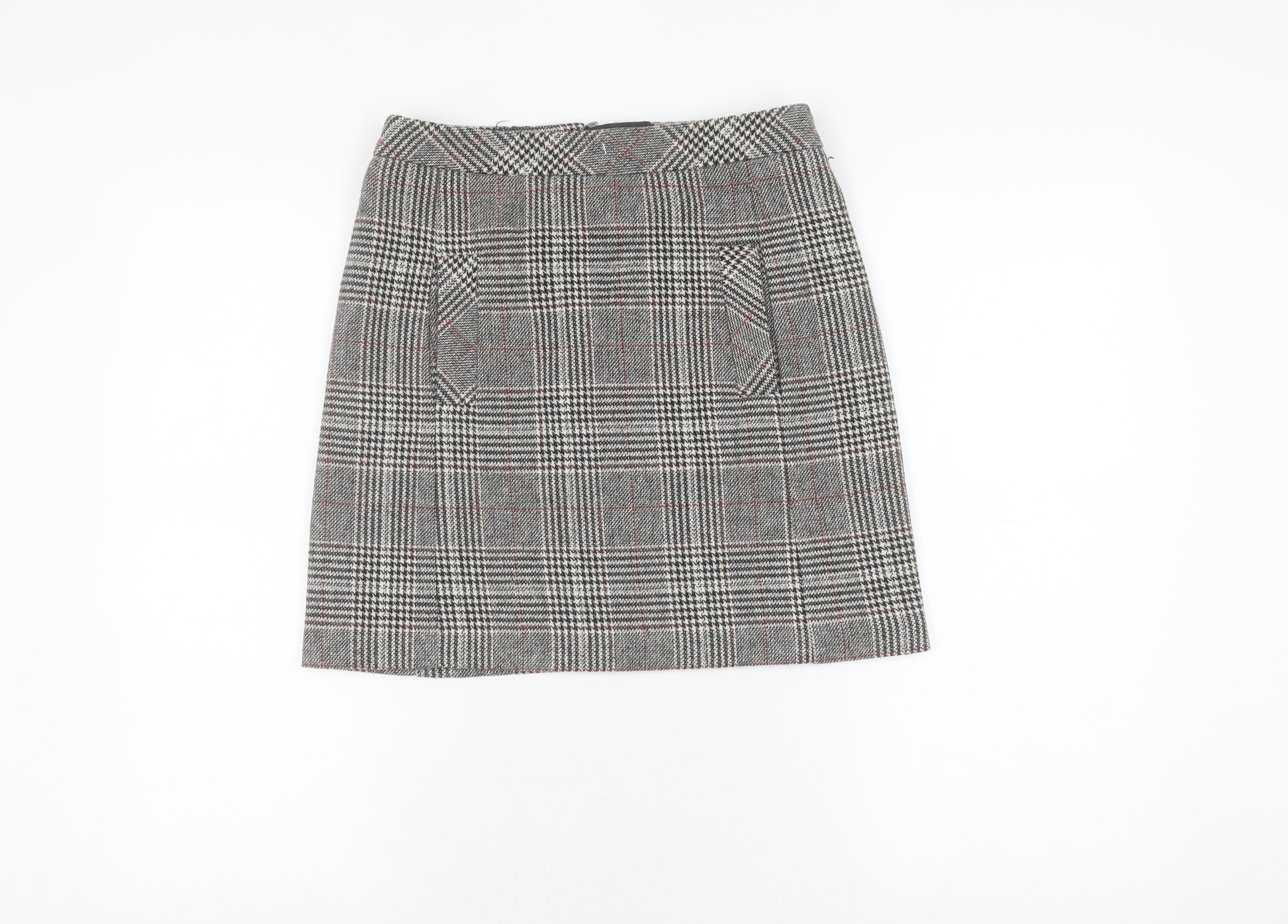Next Women Grey Houndstooth Pleated Mini Skirt Size 6
