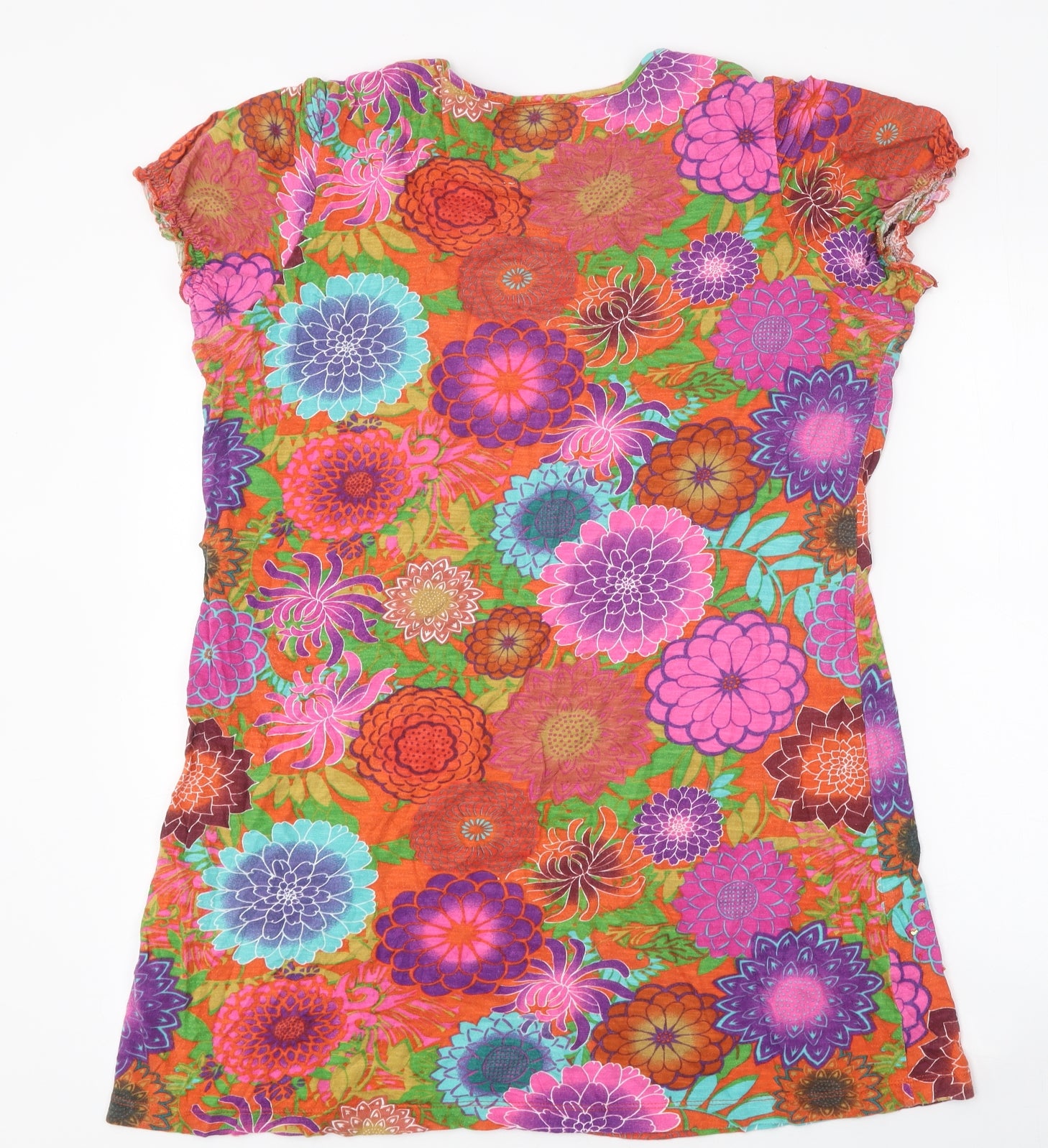 Womens Multicoloured Floral 100% Cotton Basic T-Shirt Size 16 Round Neck