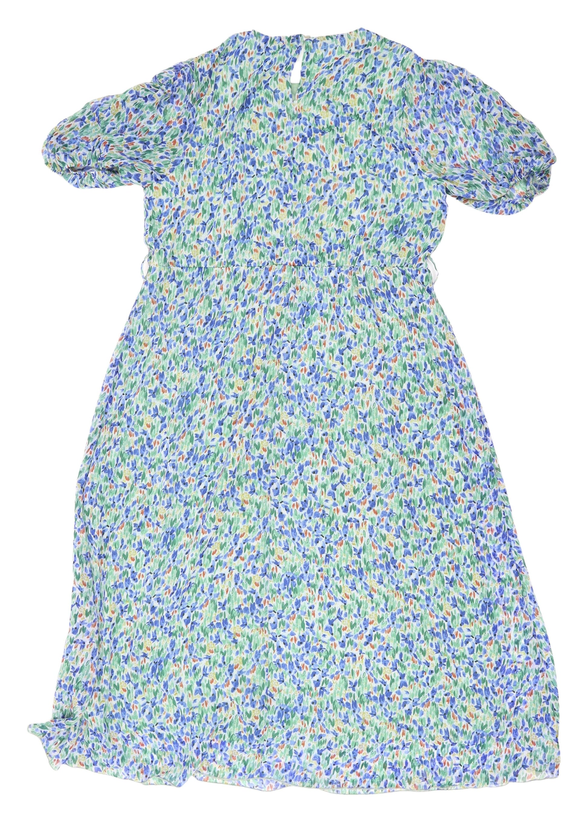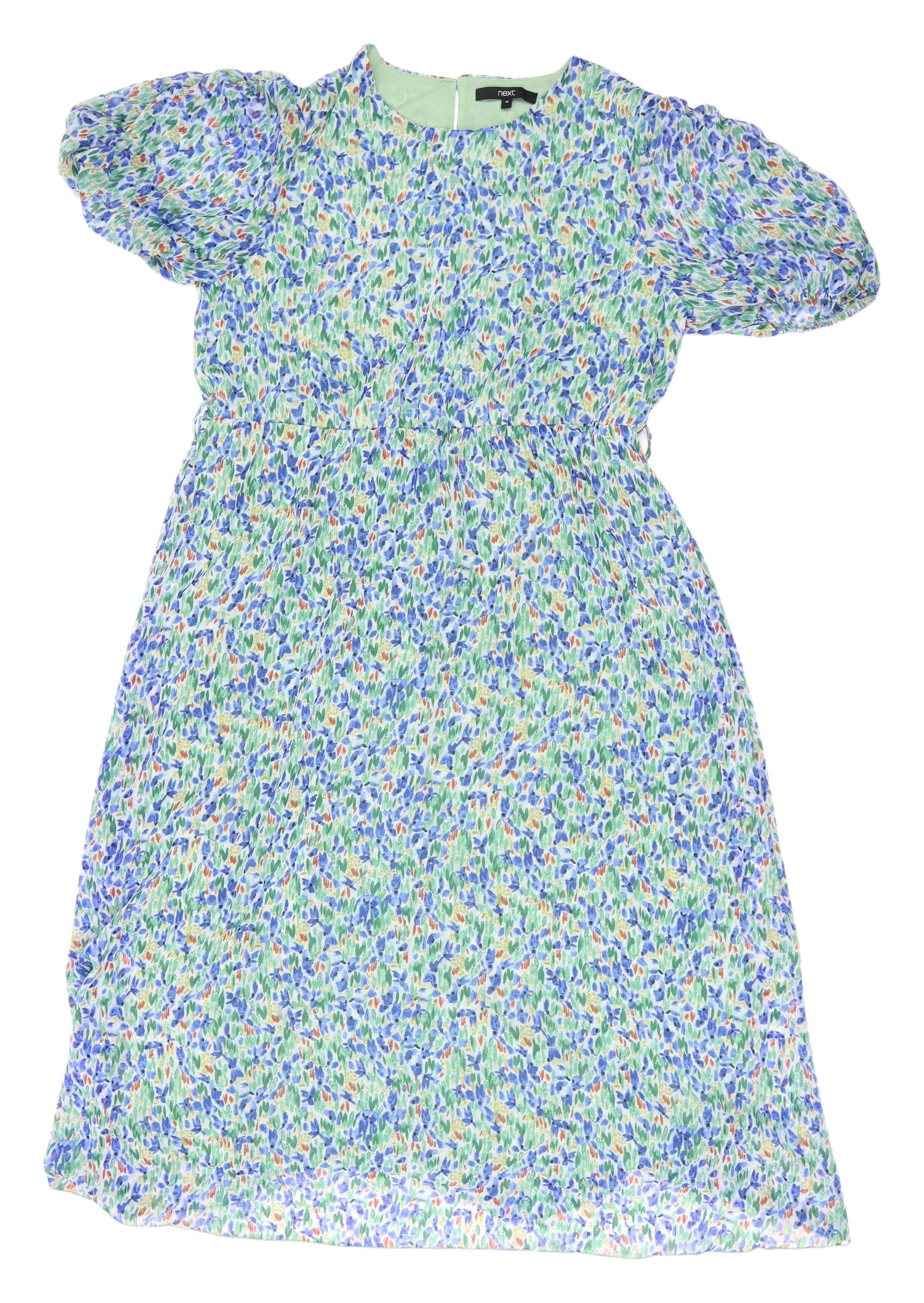 This Next women's floral dress in size 16 is an elegant addition to any wardrobe. Crafted from 100% polyester, it offers a lightweight and comfortable fit perfect for spring outings. The multicoloured floral pattern exudes a timeless charm, suitable for casual occasions. The A-line style paired with puff sleeves adds a touch of femininity, making it a versatile piece for any daytime event. Designed with a crew neckline and button closure, it embodies a classic silhouette. Its machine washable fabric ensures easy care, while the excellent condition indicates minimal to no signs of wear. Enhance your spring style with this vivacious yet understated dress that promises effortless elegance. Ideal for a sunny day out or a casual gathering, this dress will surely make you stand out with its vibrant floral print and comfortable design.