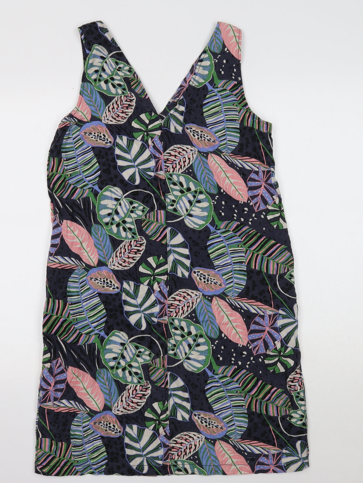 Womens Multicoloured Floral Linen Tank Dress Size 10 V-Neck Pullover