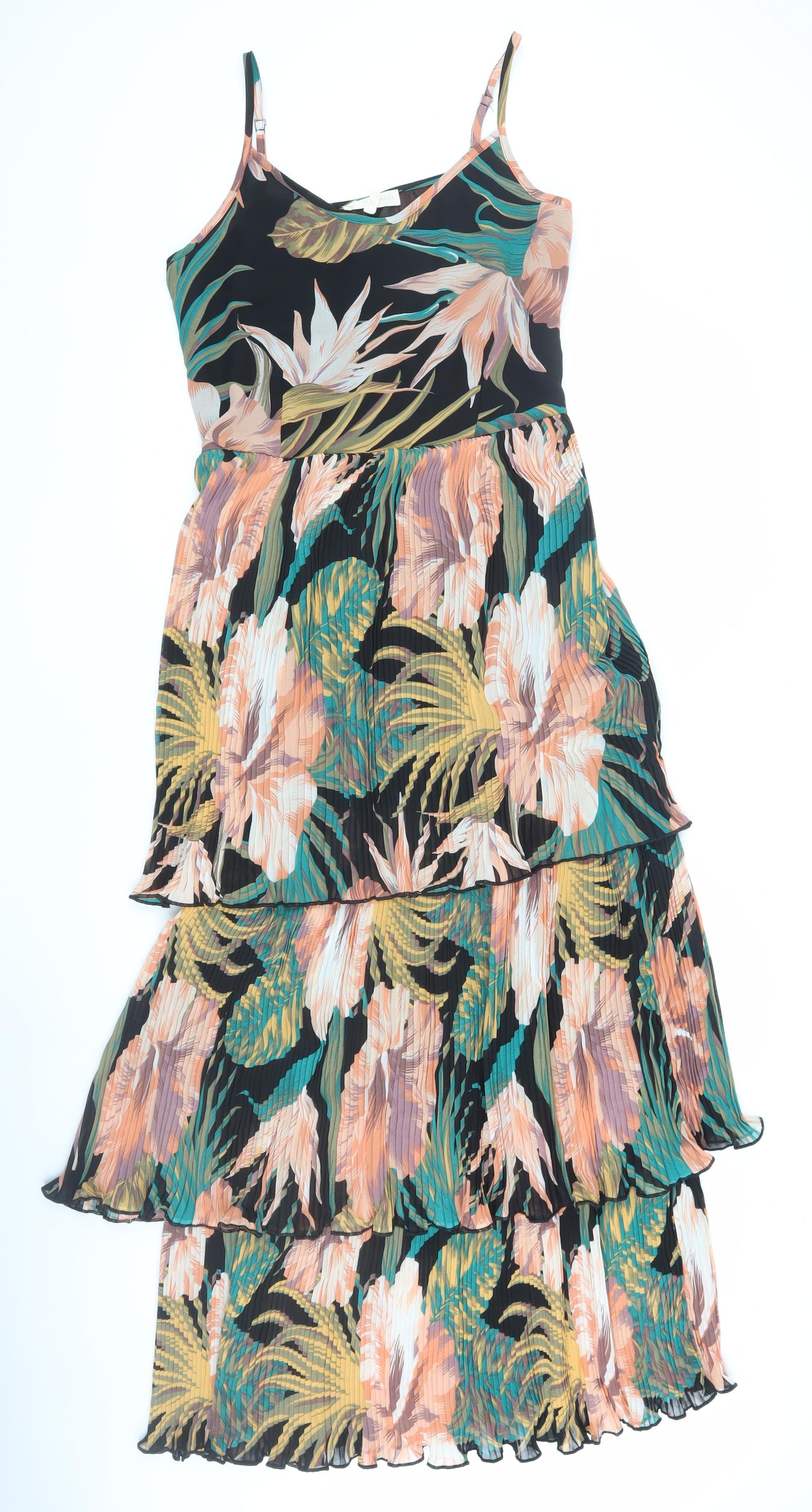 This stunning slip dress from Next is a must-have addition to any wardrobe. Featuring a vibrant multicoloured floral print, this dress is perfect for those who love to make a statement. Ideal for spring and summer occasions, such as cocktail parties or garden gatherings, its lightweight and ruffle accents add a touch of playful elegance.Designed for comfort and style, this dress boasts a scoop neckline and sleeveless, strappy design, making it a versatile piece for warmer months. The pullover closure allows for easy wearing, while its regular size 10 fit ensures it will flatter your figure beautifully. The dress is crafted from 100% polyester, making it both durable and machine washable, perfect for effortless maintenance.Embrace a tropical theme and enjoy the party-ready charm of this dress. With no signs of wear and in excellent condition, this piece looks like new. Priced affordably, it offers exceptional value without compromising on style. Don't miss out on this eye-catching design, perfect for adding a splash of colour and sophistication to your outfit.