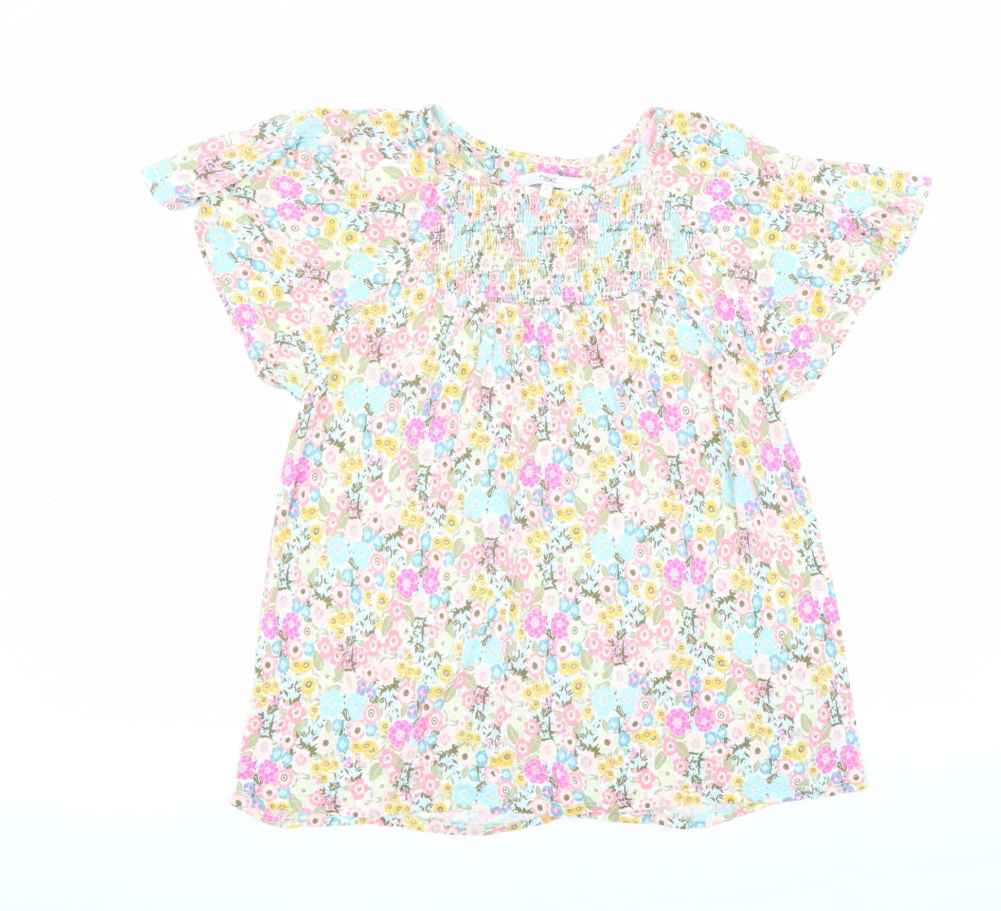 Embrace the vibrant charm of floral patterns with this stunning top from Next. Designed for women, this top in size 12 combines comfort and style effortlessy. The multicoloured floral pattern adds a touch of playful elegance, making it perfect for casual outings or a day out with friends. Crafted with a blend of 96% viscose and 4% elastane, the fabric offers a comfortable stretch and soft feel. Its excellent condition ensures durability and a fresh look. A delightful addition to any wardrobe, this top is versatile enough to pair with jeans or skirts for a stylish ensemble.