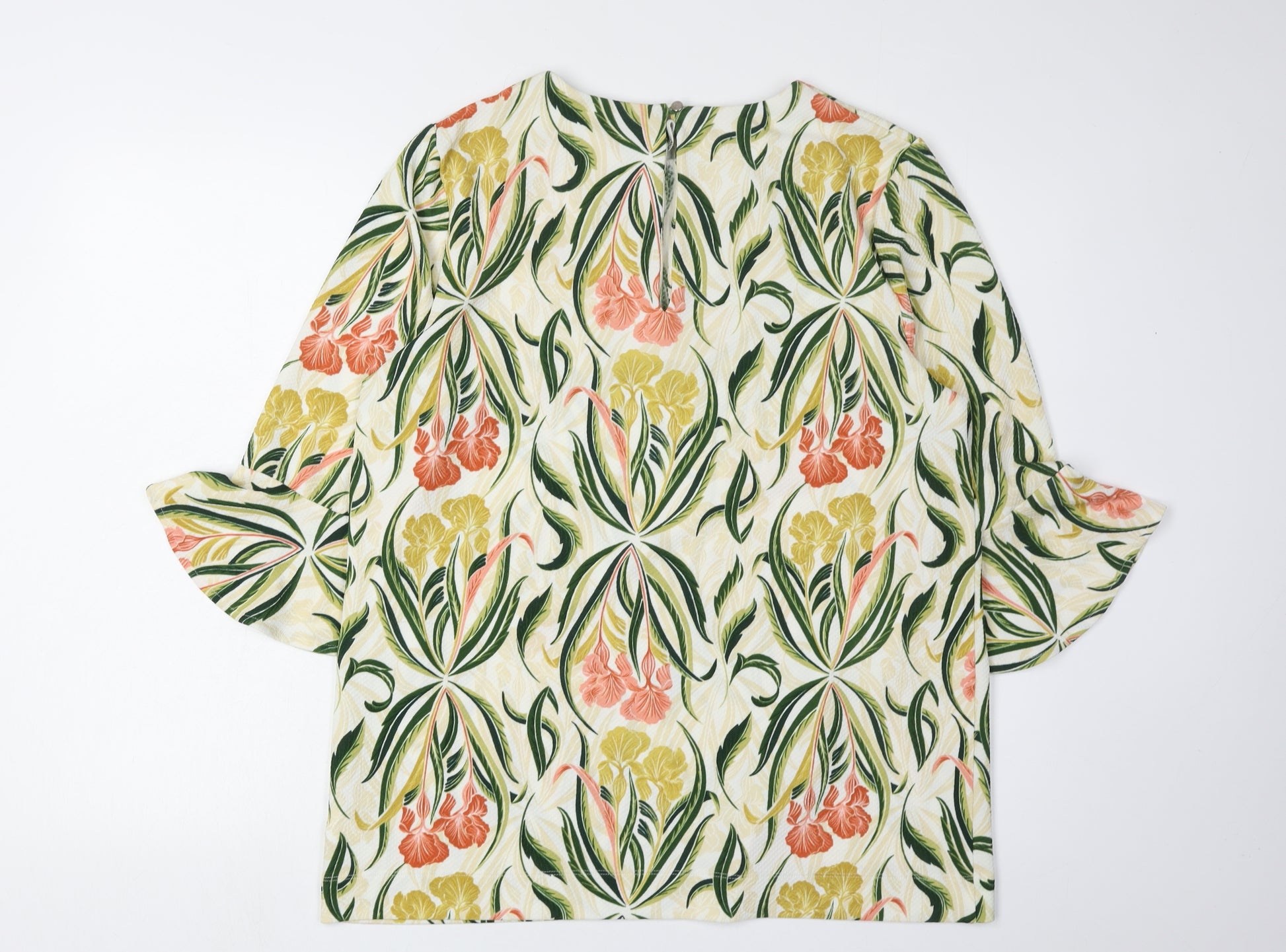 Elevate your wardrobe with this elegant Women's Floral Tunic Blouse from Next. In a delightful multicoloured palette, this blouse is styled with a flattering round neckline and beautiful 3/4 bell sleeves, offering a feminine and sophisticated look. Crafted from a comfortable woven blend of polyester and elastane, it's perfect for all-day wear. The tunic style adds a relaxed fit, making it ideal for casual occasions during the spring and summer seasons. Whether paired with jeans or slacks, this blouse will seamlessly transition from a day at work to an evening out. Designed for the modern woman, this blouse offers a chic and stylish floral pattern that brings a touch of nature-inspired elegance to your outfit. Machine washable for easy care, it's a practical addition to your wardrobe. Secure it with its convenient button closure while enjoying a regular fit tailored to size 16. In excellent condition with no visible flaws, this piece promises both style and comfort.
