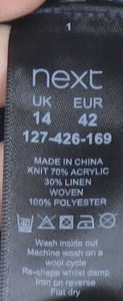 Elevate your wardrobe with this charming tunic top from Next, perfect for adding a touch of flair to your casual outfits. Designed for women, this sleeveless tank top offers a regular fit, ensuring comfort and style go hand in hand. The multicoloured floral pattern coupled with an asymmetrical hemline, exudes an effortless chic vibe that is perfect for spring and summer outings. Crafted with a blend of acrylic, linen, and polyester, its knit fabric promises a soft and breathable wear. The crew neckline and button closure at the back add subtle details to its overall simple yet stylish design. This tunic top, in size 14, is ideal for casual occasions, easily pairing with your favourite jeans or skirts. Machine washable for easy care, this top is a versatile addition to any wardrobe, promising comfort and elegance. Don't miss the chance to add this excellent condition piece to your collection, perfect for embracing your unique style with a hint of floral charm.