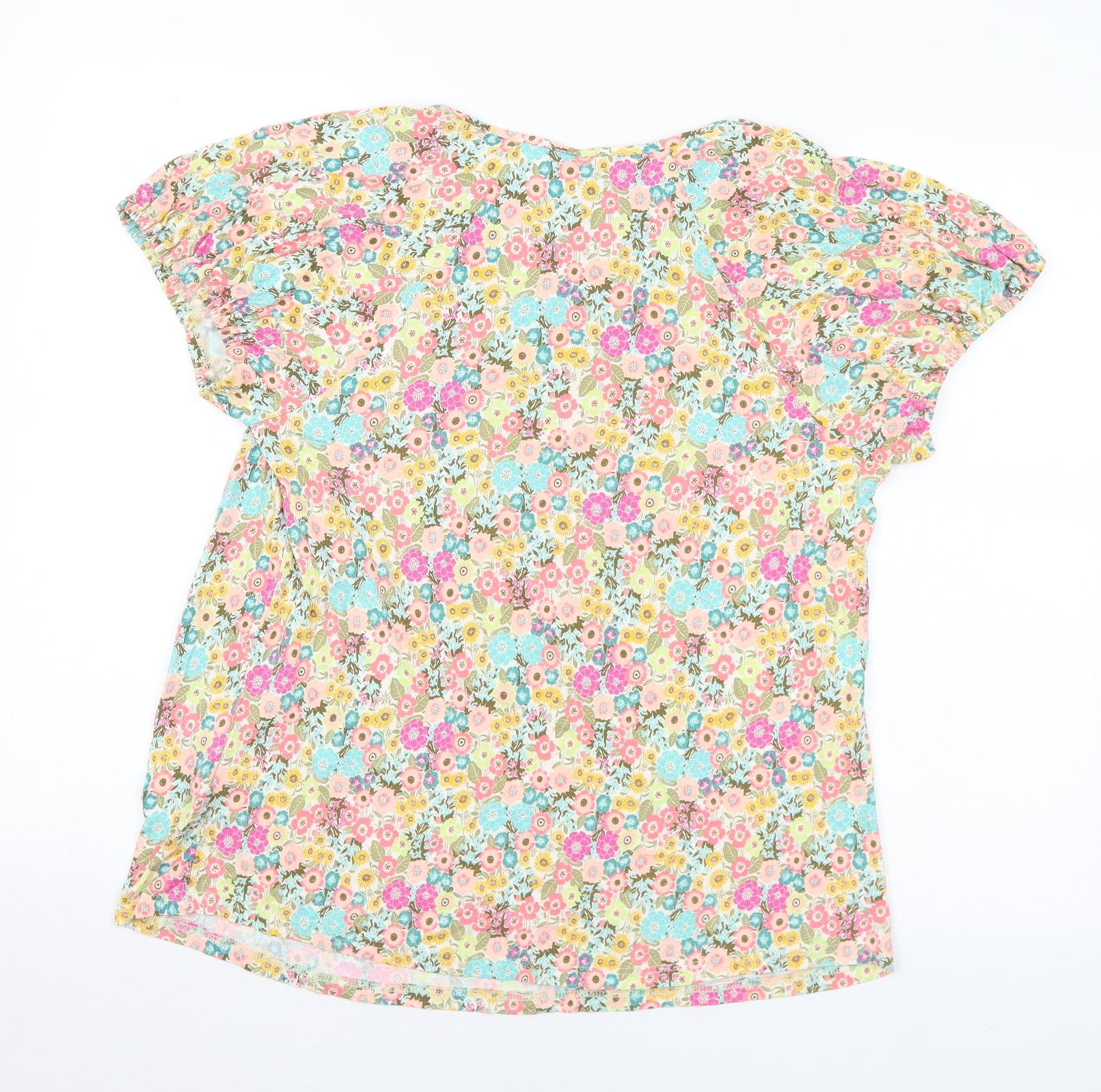 Womens Multicoloured Floral Viscose Basic T-Shirt Size 12 Round Neck