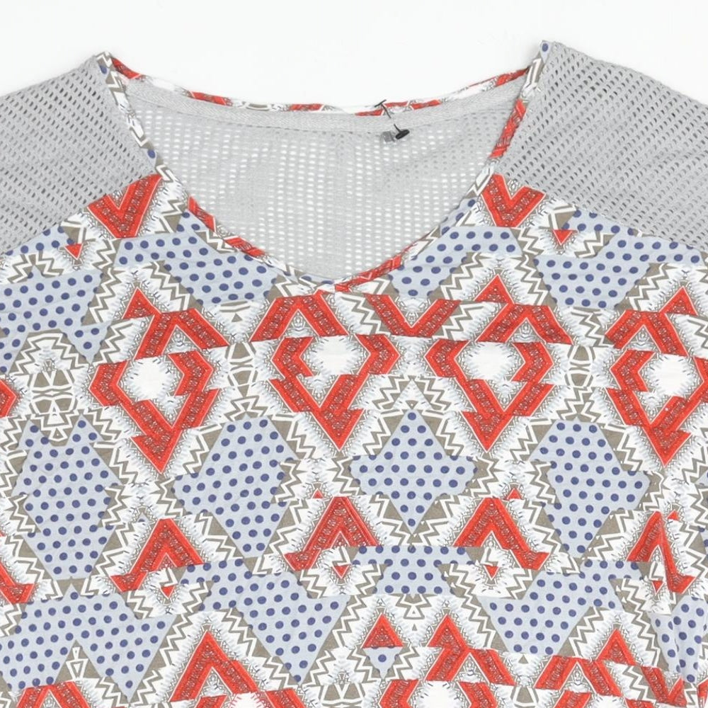 Womens Multicoloured Geometric Viscose Basic Blouse Size 12 V-Neck