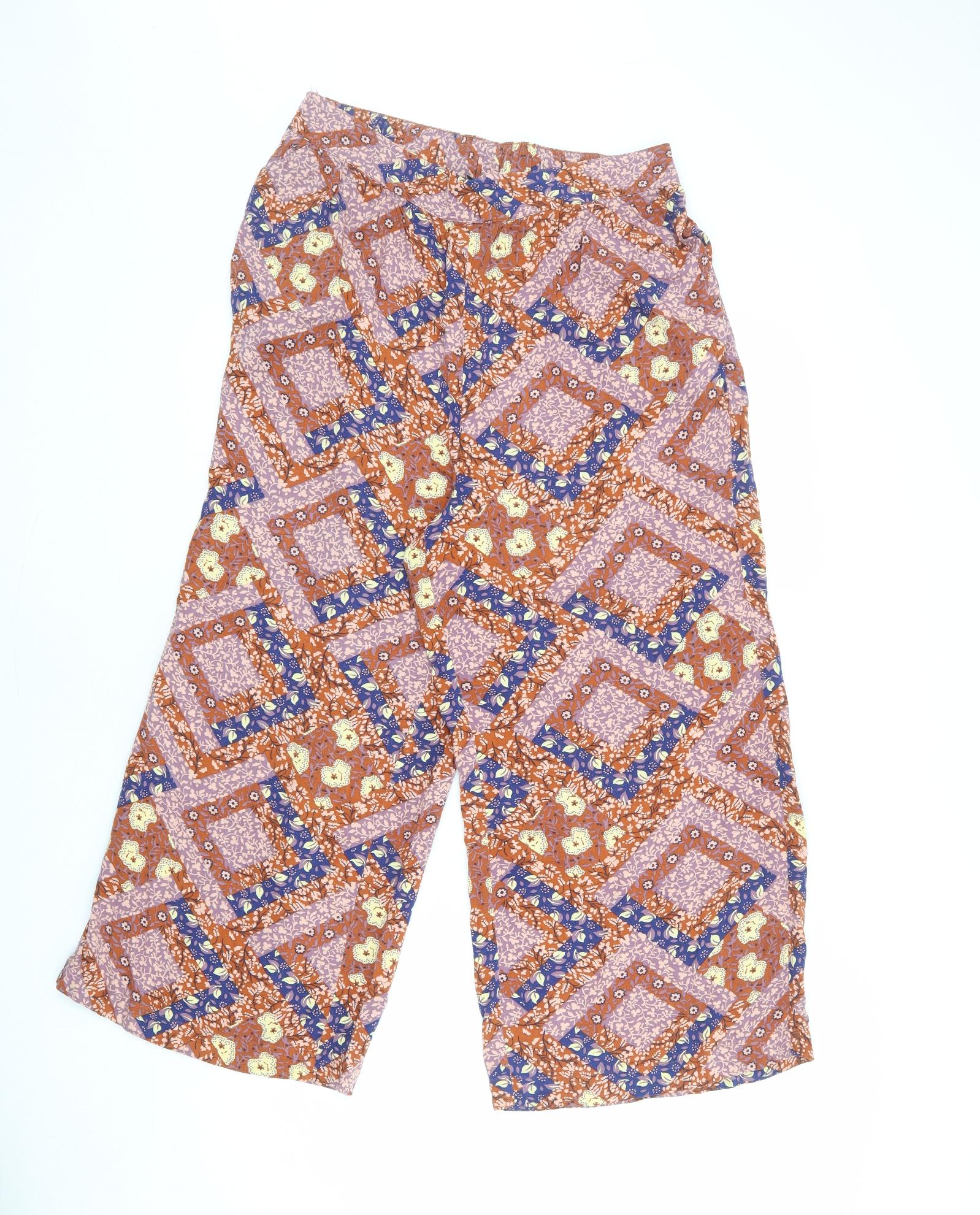 Womens Multicoloured Geometric Viscose Trousers Size 12 L23 in Regular
