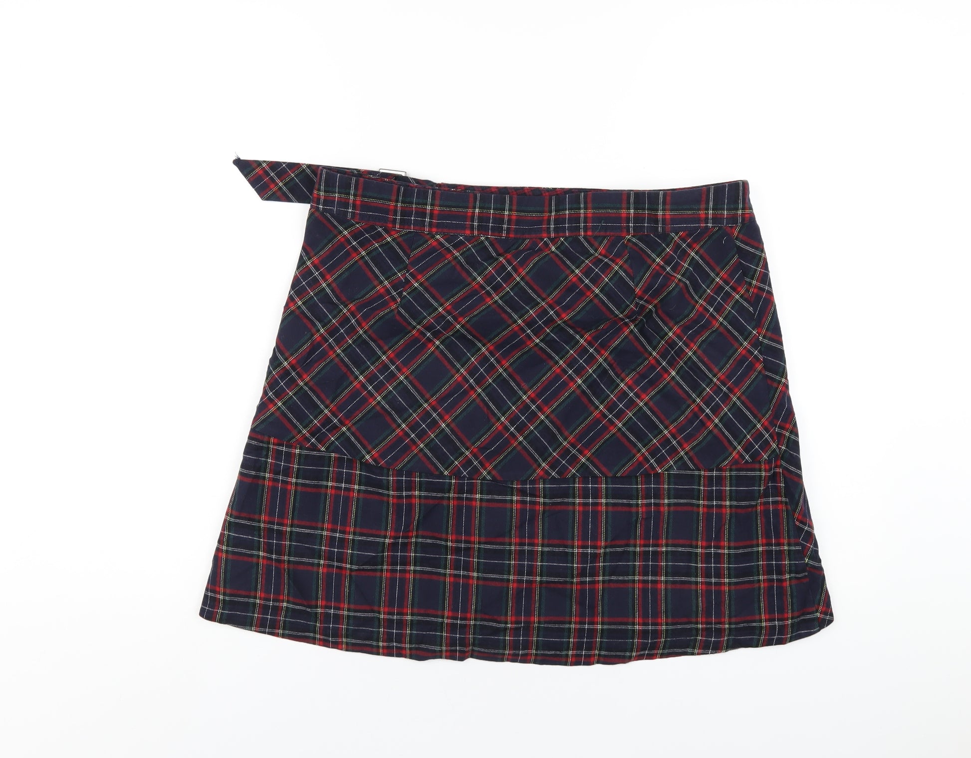 Womens Multicoloured Plaid Cotton A-Line Skirt Size 14 Button