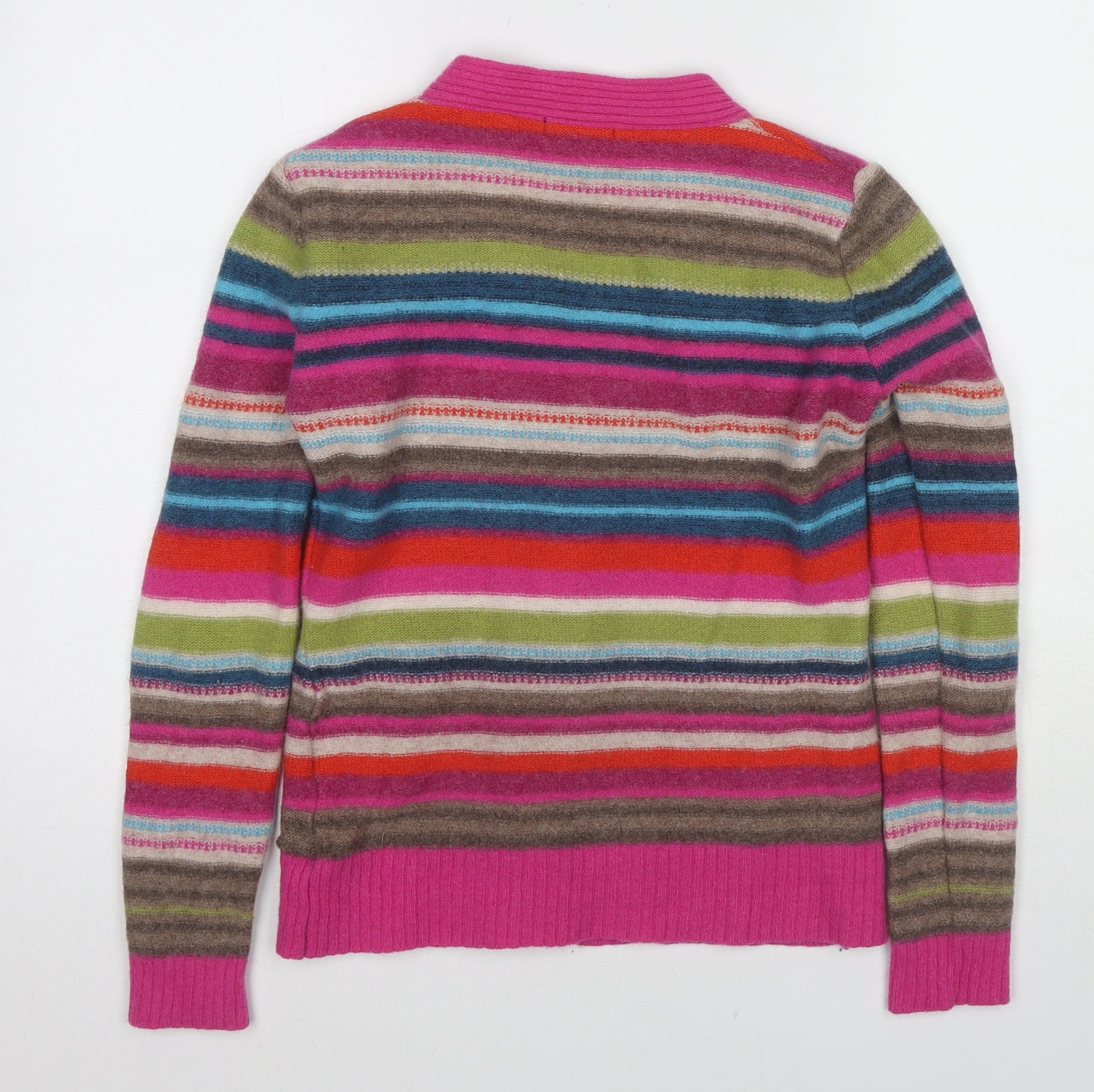 Womens Multicoloured V-Neck Striped Wool Cardigan Jumper Size 12