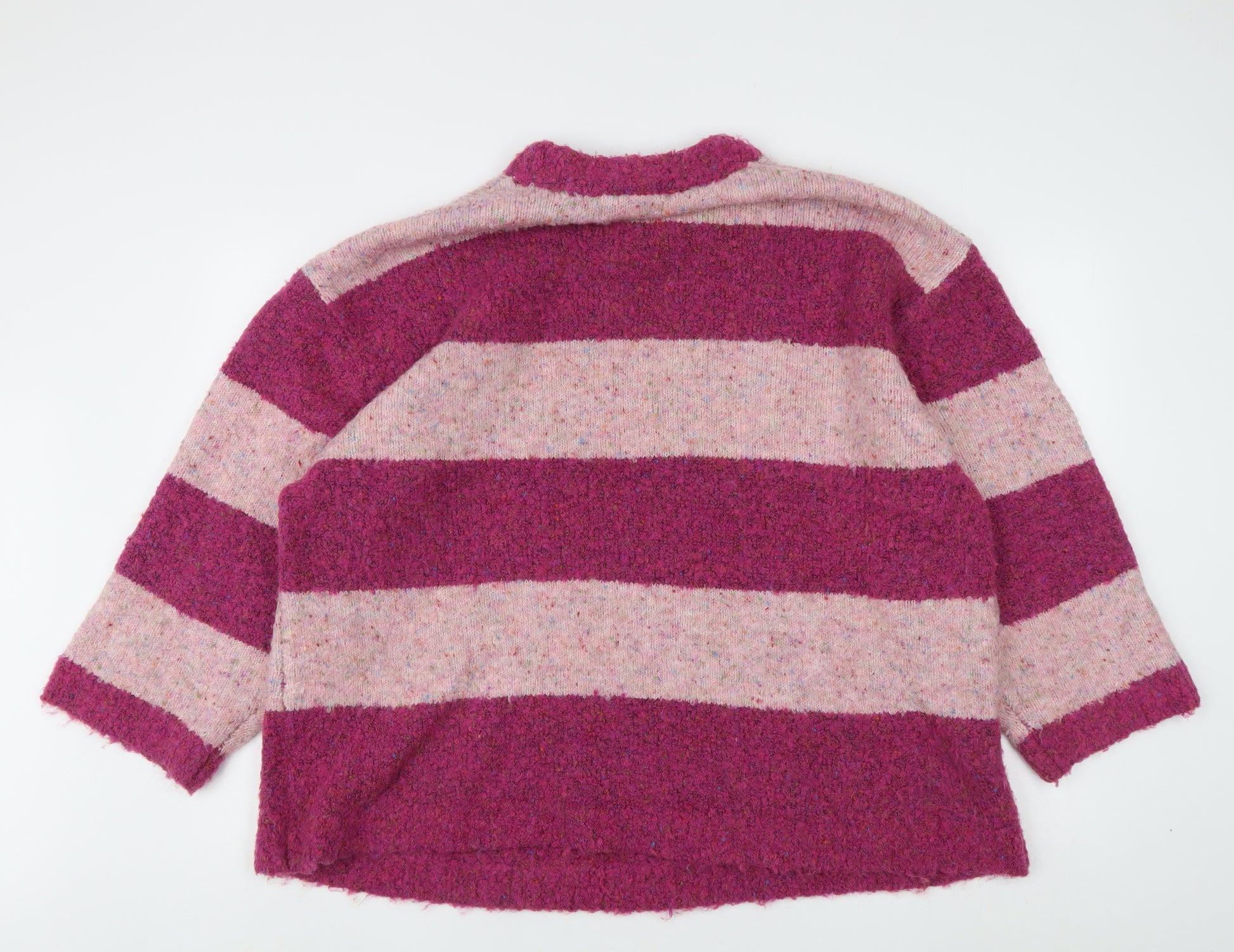 Stay cosy with this stylish Next chunky-knit jumper, perfect for those chilly autumn and winter months. This relaxed-fit pullover comes in a vibrant multicoloured striped pattern, adding a lively touch to your wardrobe. Crafted from a soft blend of materials including polyester, acrylic, wool, and elastane, it promises both comfort and durability. The crew neckline offers a classic look, while the 3/4 sleeves make it versatile enough for layering. Ideal for casual occasions, this jumper combines functionality with fashion effortlessly. Enjoy the ease of machine washing, keeping it fresh and ready for frequent wear. Elevate your autumn attire with this lovely knit, perfect for pairing with jeans or skirts to bring warmth and style to your outfit choices. Gently used and in excellent condition, this piece shows little to no signs of wear, ensuring you'll have a staple piece that lasts. Available in XL, it's suited for those who prefer a spacious, comfortable fit. Bring vibrancy and warmth to your collection with this eye-catching piece from Next.