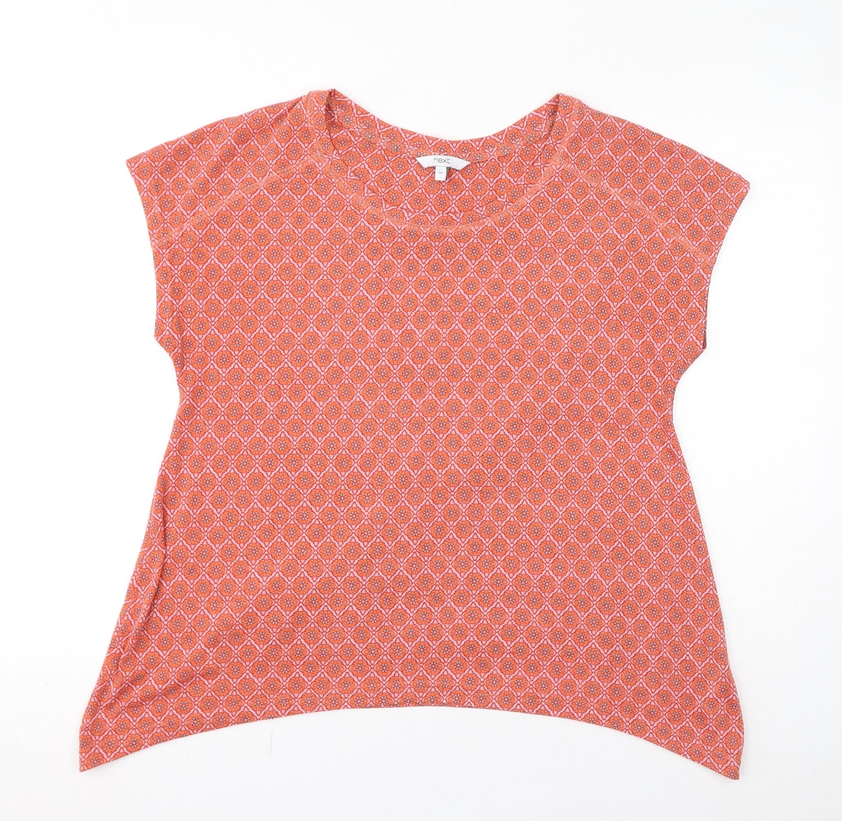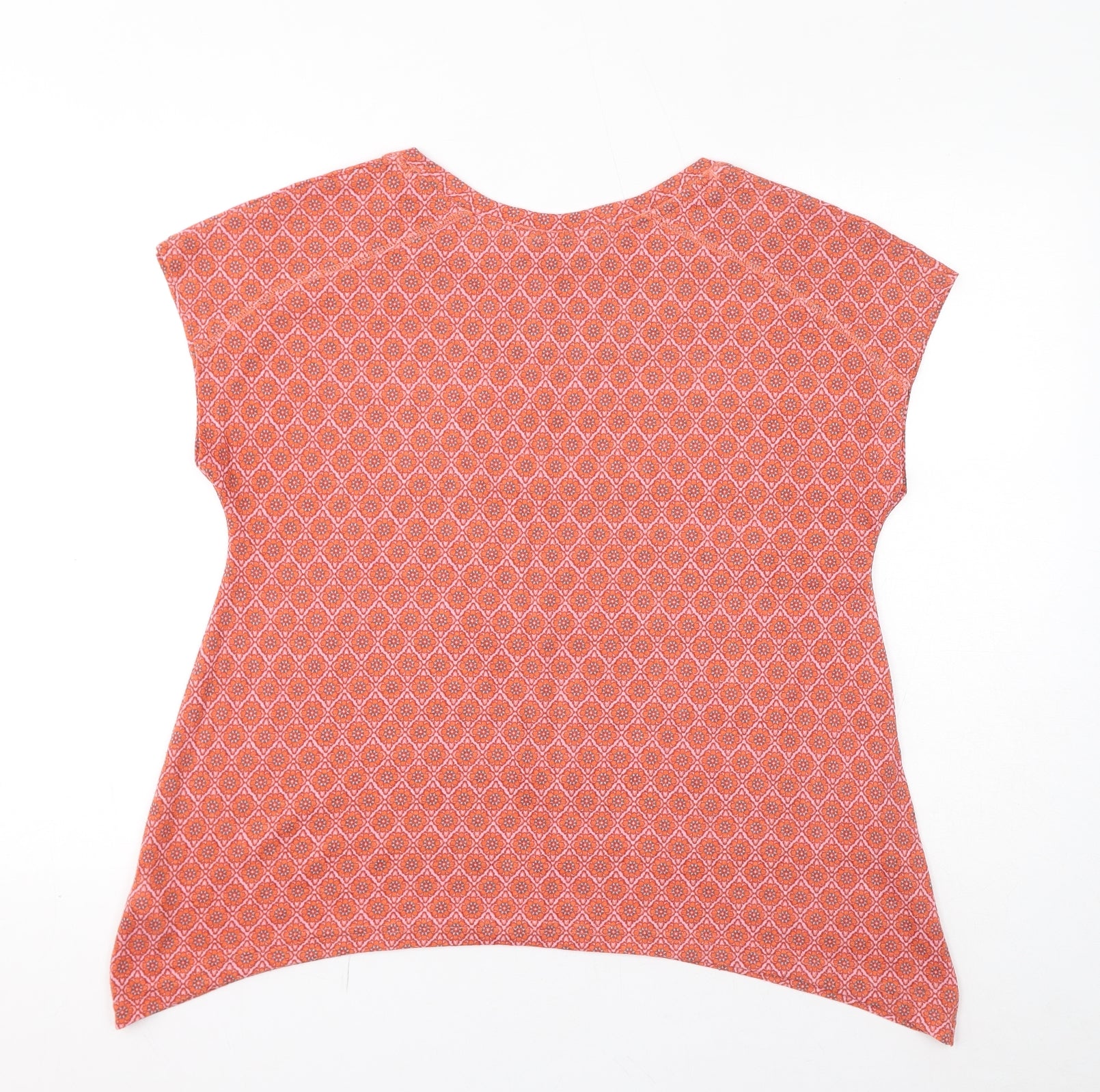 Womens Orange Geometric Polyester Basic T-Shirt Size 14 Round Neck