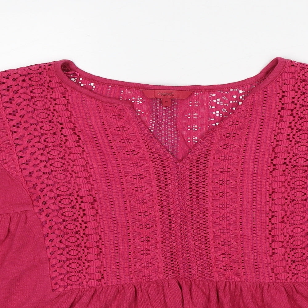 Womens Pink Cotton Basic Blouse Size 10 V-Neck - Lace Detail