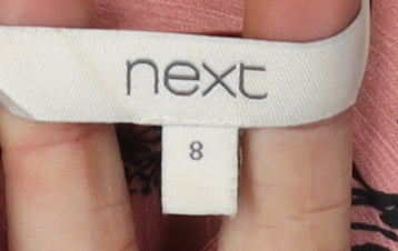 Step out in style with this exquisite women's floral blouse from Next, perfectly designed for casual outings and special occasions alike. Crafted from 100% polyester, this blouse boasts a high neck and button closure for an effortlessly chic look. The soft pink hue is beautifully contrasted by a delicate black floral print, adding a touch of femininity and sophistication to any wardrobe. With its woven fabric type, the blouse combines comfort with a smooth finish, ideal for all-day wear. Featuring elegant balloon sleeves, it provides a fashion-forward twist, ensuring you stand out in any crowd. The versatile piece is specially tailored for a regular fit, making it the perfect addition for any woman seeking a blend of comfort and glamour. Despite being preloved, it's in excellent condition, showcasing no visible signs of wear. This lovely item offers a timeless appeal, suitable for various occasions, and effortlessly pairs with jeans or skirts. Available now at an attractive price, this Next blouse is not just an outfit but an expression of style and grace. Embrace it for your next gathering, and let your fashion sense bloom.