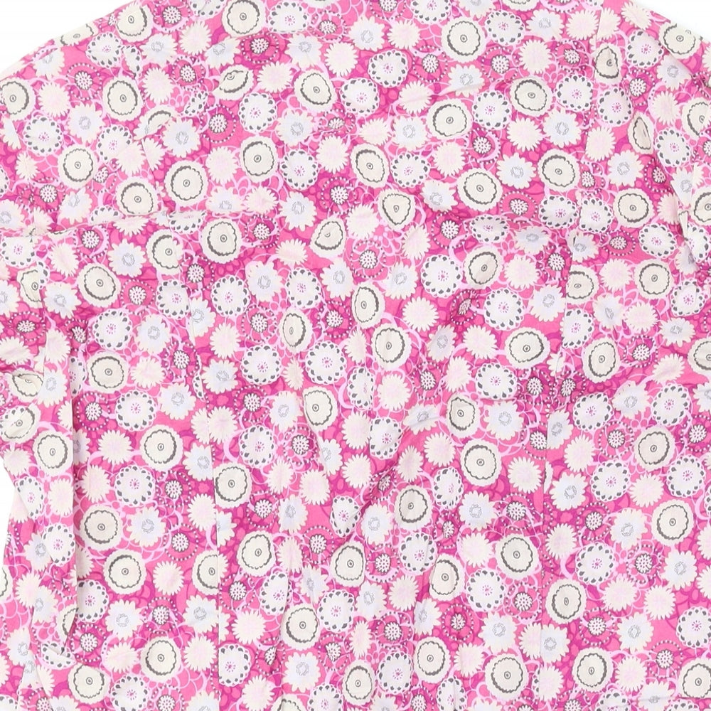 Womens Pink Floral Cotton Basic Button-Up Size 12 V-Neck