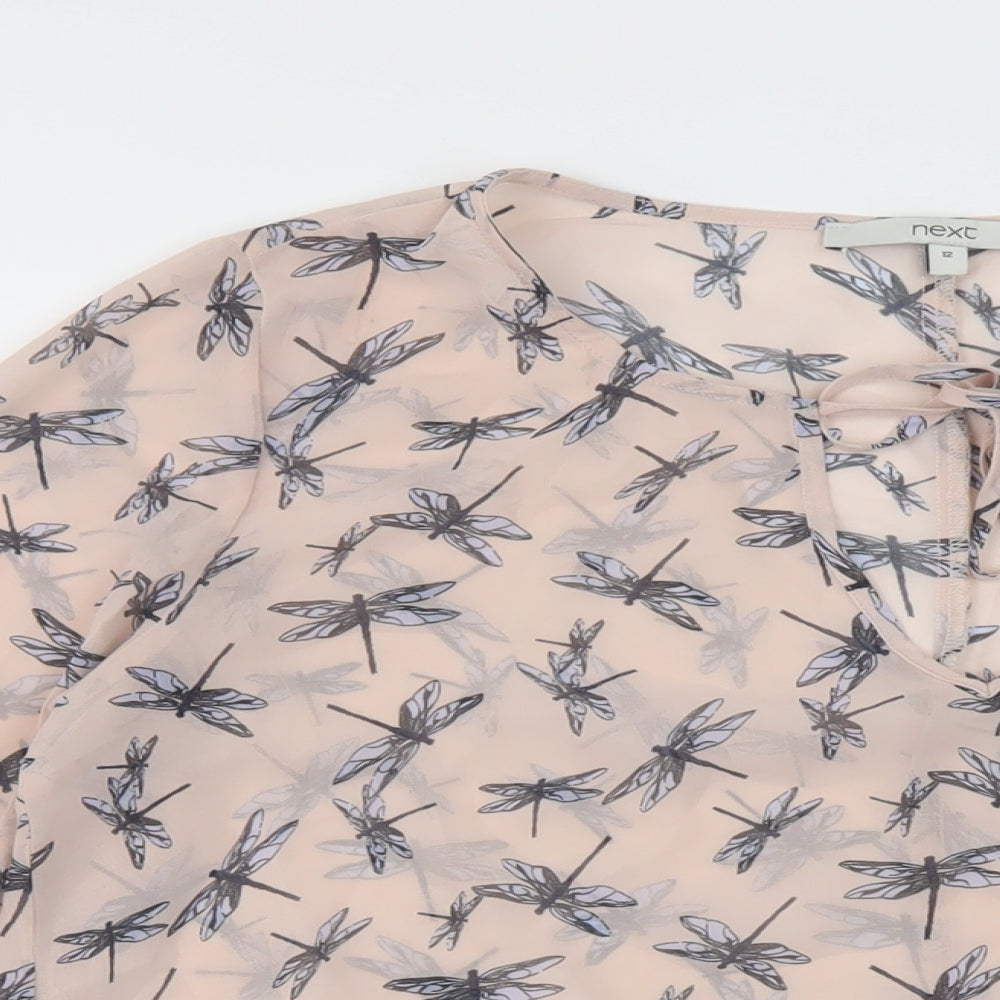 Womens Pink Geometric Polyester Basic Blouse Size 12 Round Neck