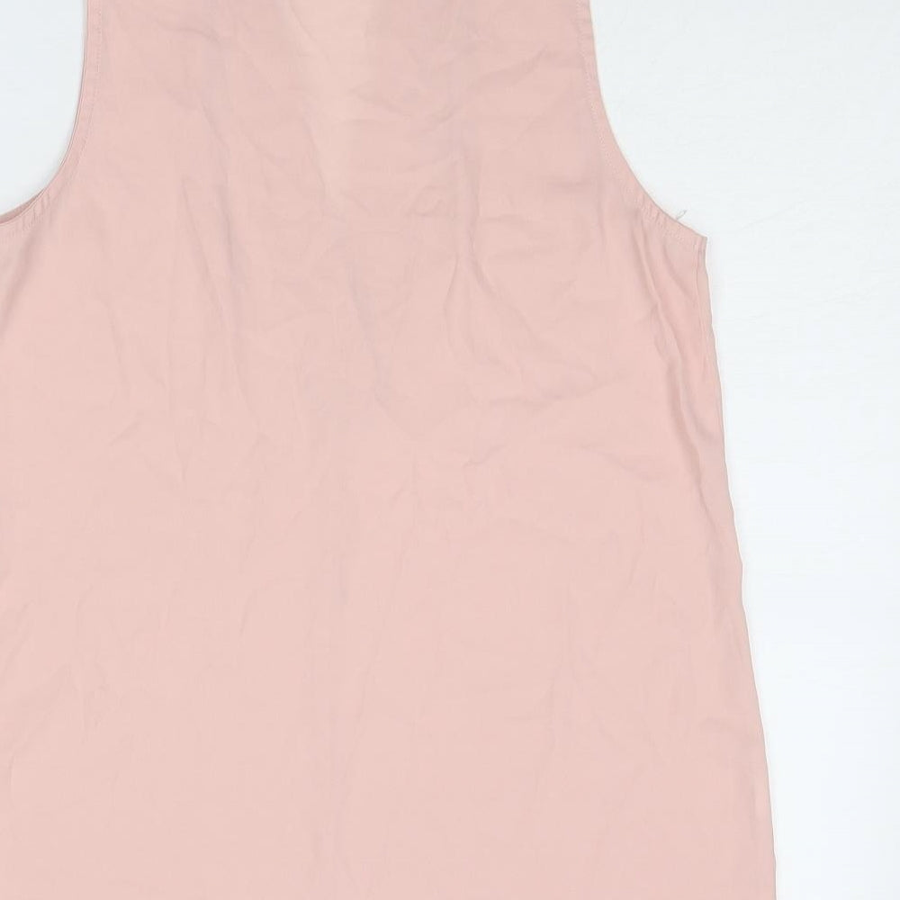 Womens Pink Polyester Basic Blouse Size 6 V-Neck