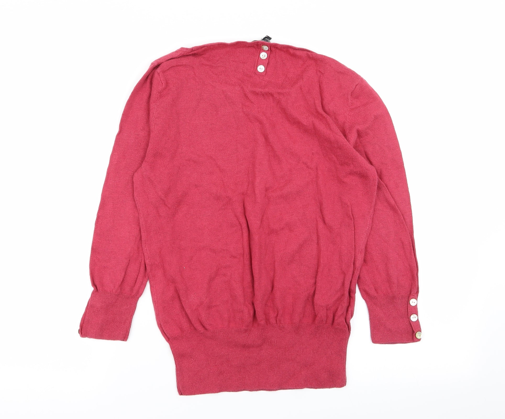 Olsen Women’s Pink V-Neck Long Sleeve Acrylic Cotton Jumper Size 14