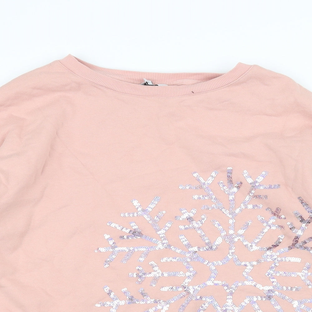 Next Women’s Pink Cotton Open-Knit Crew Neck Jumper Size M