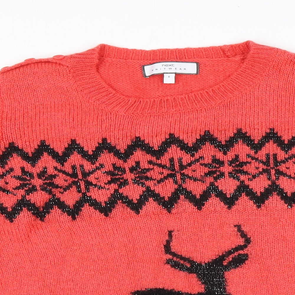 Womens Pink Round Neck Fair Isle Acrylic Pullover Jumper Size 8 - Stag