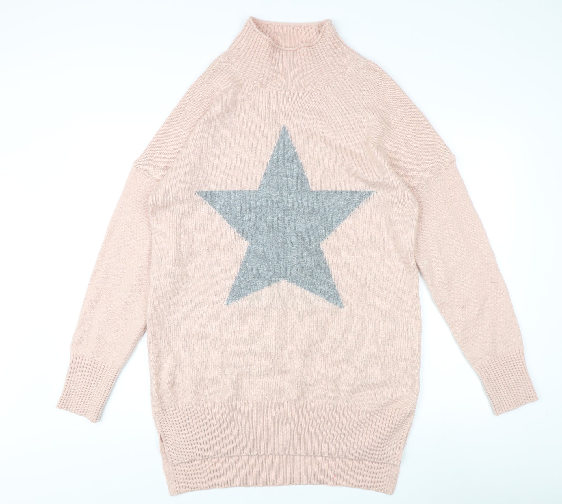 Elevate your autumn wardrobe with this chic and comfortable women's jumper from Next. Crafted in a relaxed fit, this pullover features a trendy mock neck and long sleeves, ideal for keeping warm during the cooler months. Its pink knit fabric is beautifully accented with a grey star graphic, making it a standout piece for casual wear. The blend of nylon, polyester, cashmere, and wool ensures softness and durability, providing both comfort and style. Perfect for a relaxed day out, this jumper can be easily paired with jeans or leggings for an effortlessly fashionable look. Machine washable for convenient care, this jumper combines practicality with a touch of elegance. Don't miss out on adding this stylish piece to your collection!