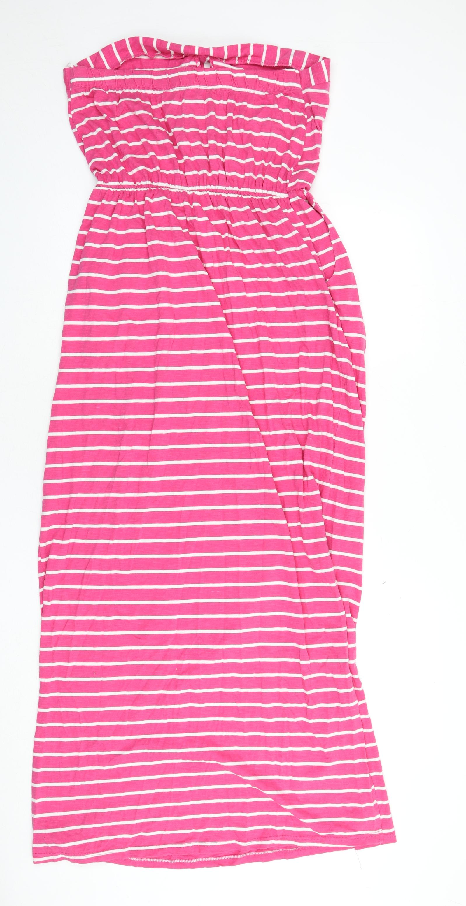 Womens Pink Striped 100% Cotton Maxi Size 16 Off the Shoulder Pullover