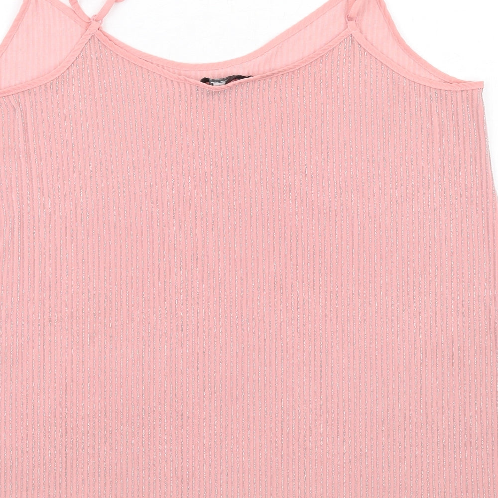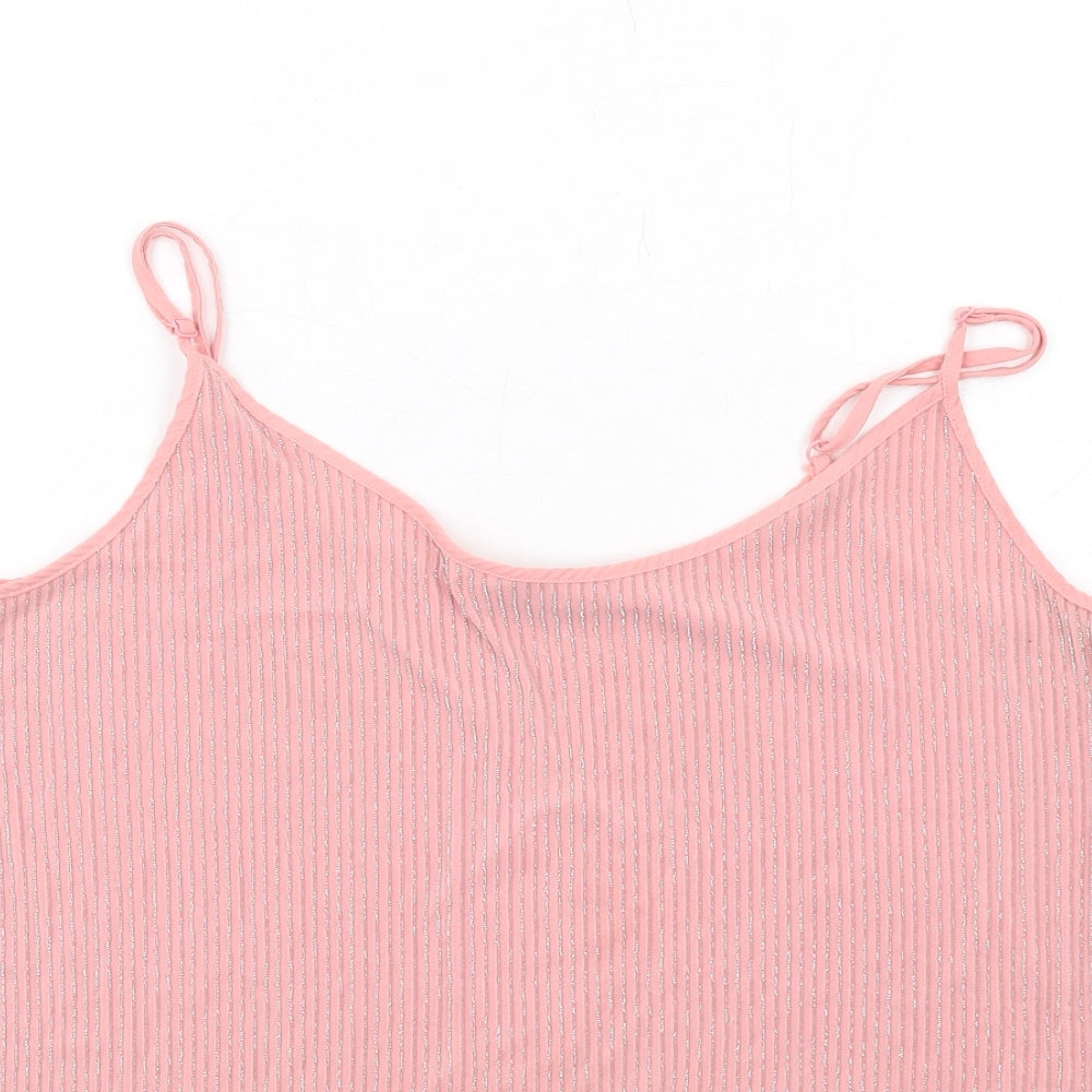 Womens Pink Striped Polyester Basic Tank Size 10 Round Neck