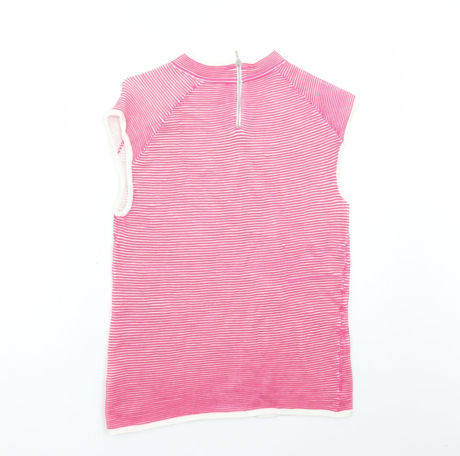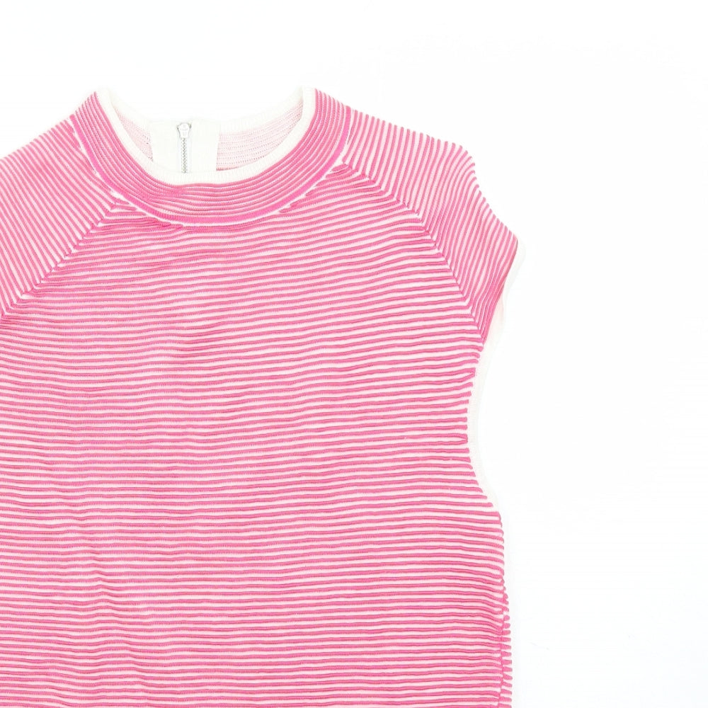 Womens Pink Striped Viscose Basic Blouse Size 14 Round Neck