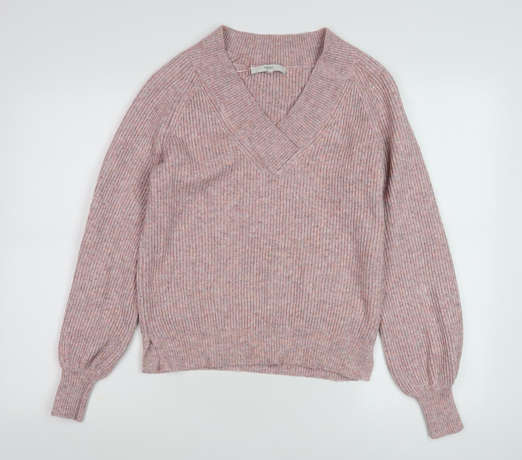 Elevate your wardrobe with this elegant pink pullover jumper from Next, a perfect blend of comfort and style for the colder months. Designed for women, this V-neck jumper in a chic pink hue is crafted from a luxurious blend of viscose, polyester, and nylon, ensuring a soft, resilient fit with a touch of class. The tight-knit construction gives it a structured shape, ideal for retaining warmth during autumn and winter. Its regular size XS fits snugly, offering a flattering silhouette. Despite its excellent condition, there are no signs of wear, making it a reliable choice for versatile styling. Easy to care for, this machine washable piece makes your daily wear hassle-free. Let this timeless jumper become your go-to choice for both casual and semi-formal occasions.