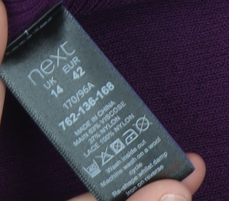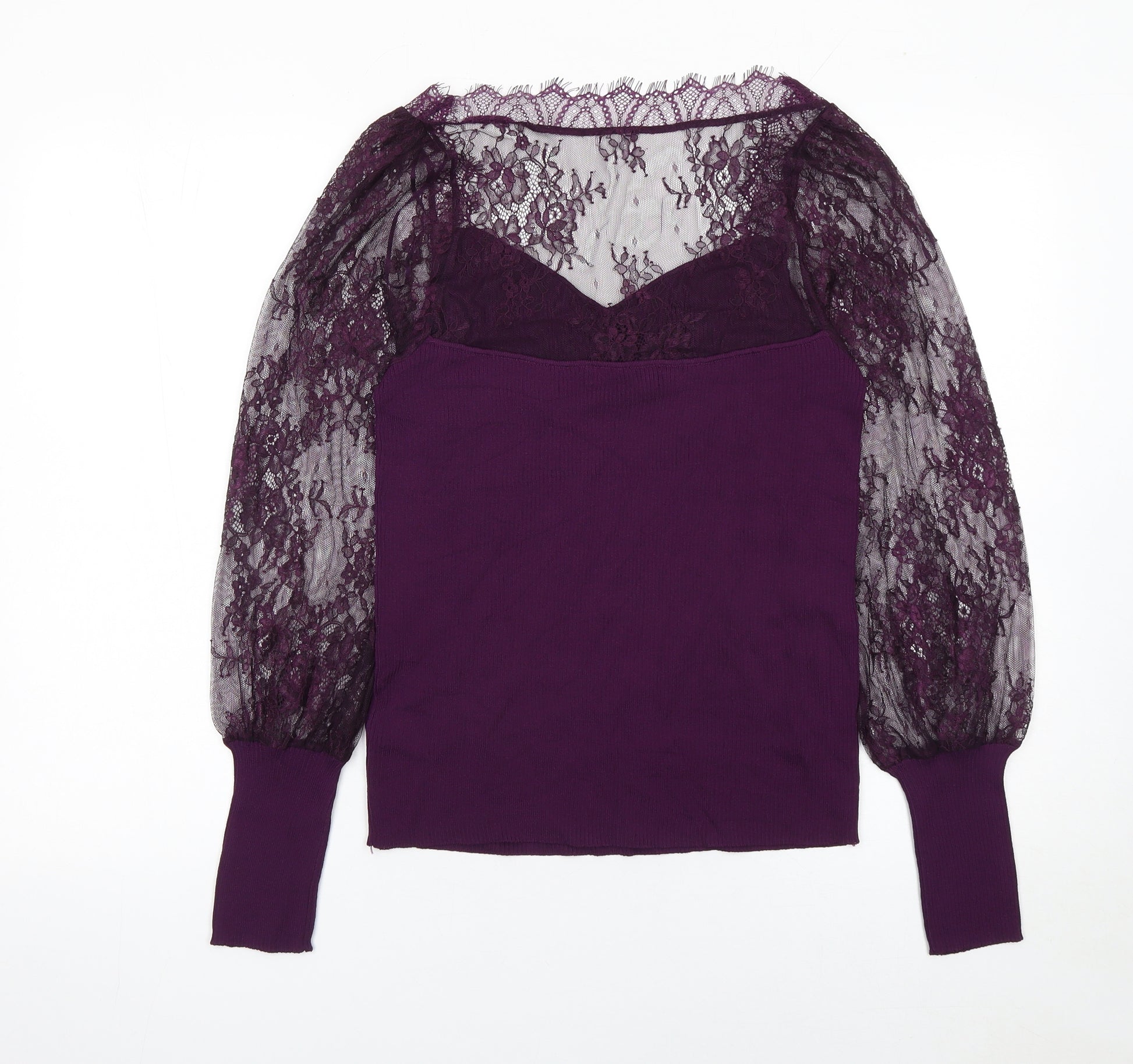 Next Womens Purple Lace Sleeve Pullover Jumper Size 14